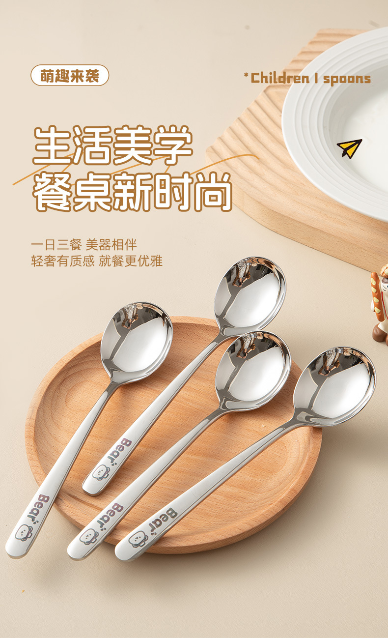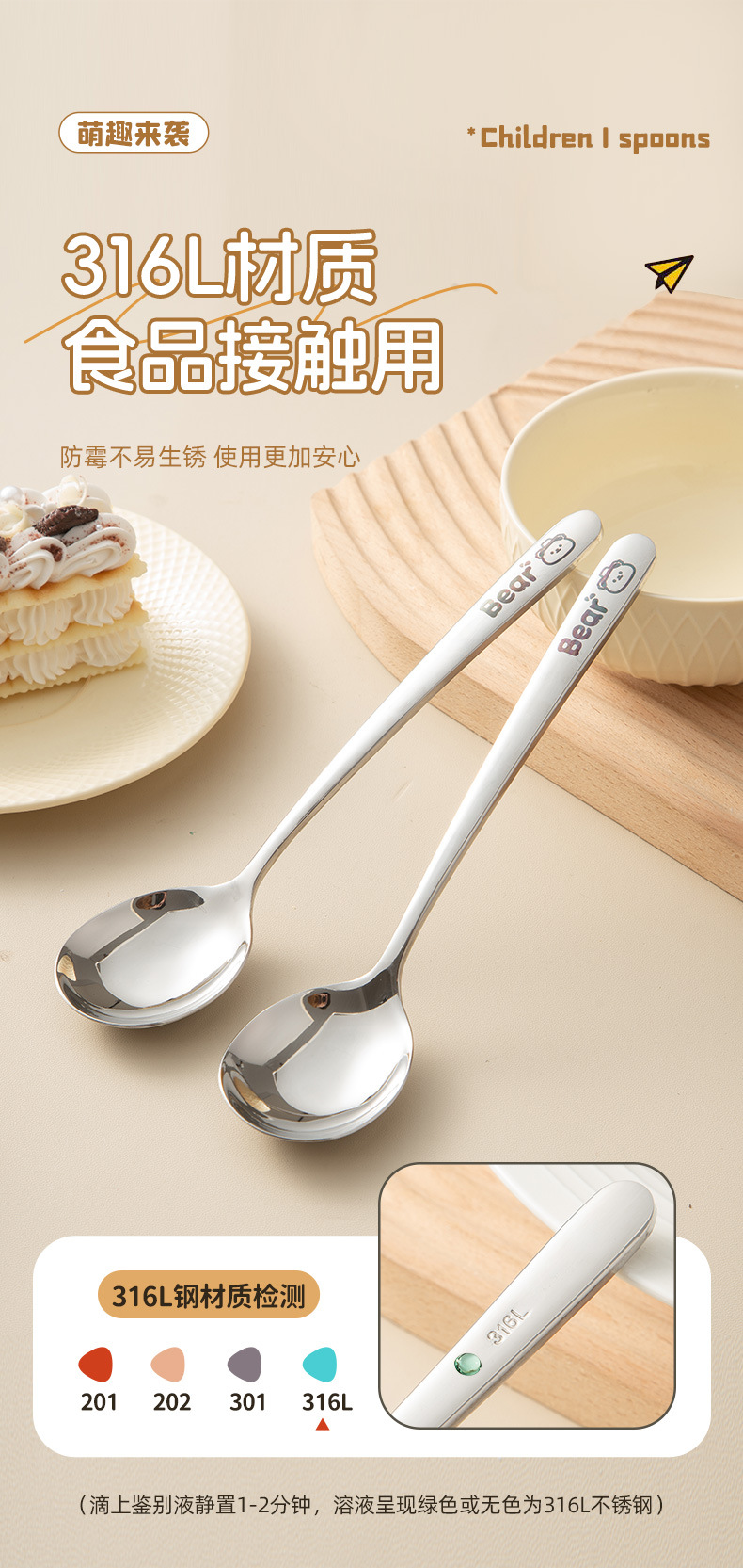 Cuchara de acero inoxidable 316 para padres e hijos Cuchara de comida para compartir comidas en casa Cuchara de mango largo Cuchara de sopa sólida para adultos para niños