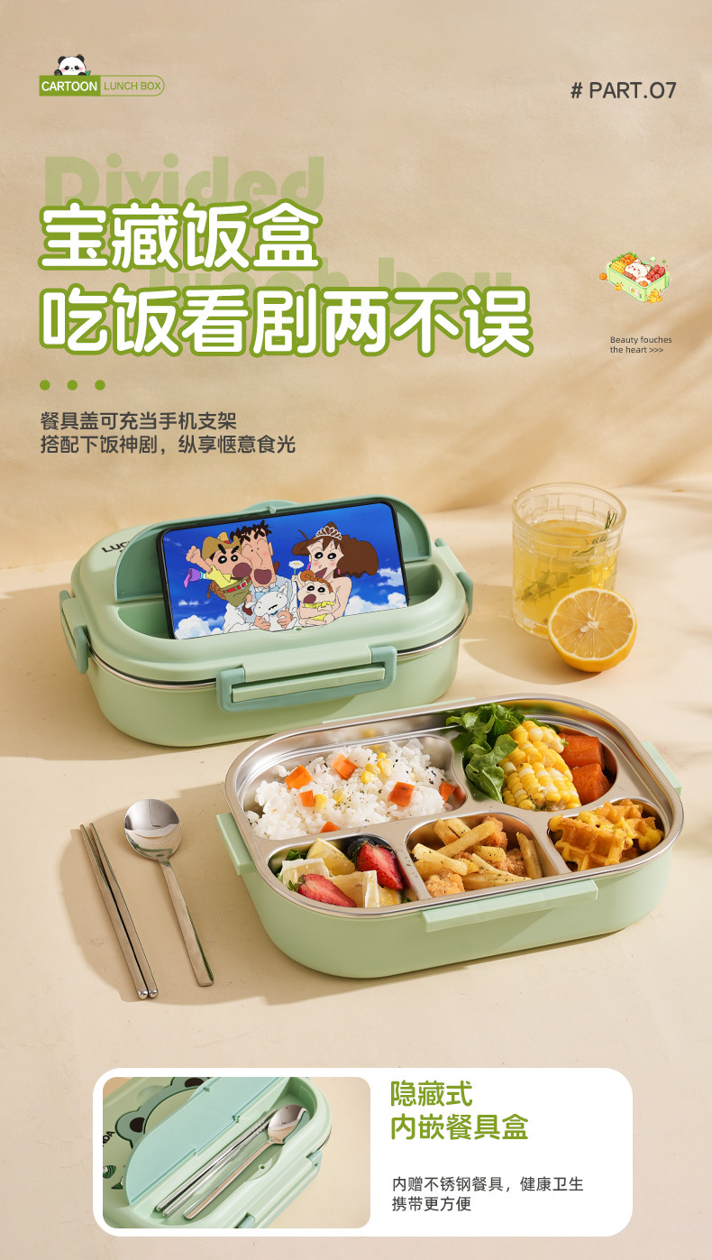 Fiambrera dividida para niños de acero inoxidable, caja de almuerzo portátil sellada a prueba de fugas, dibujos animados lindos, niños, estudiantes, escuela al aire libre