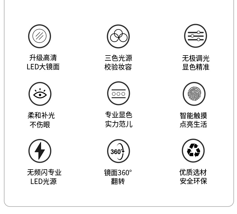 | Color | Blanco 30cm diámetro + modelo enchufable (rotatorio) 3 colores de atenuación, negro 30cm diámetro + modelo enchufable (rotatorio) 3 colores de atenuación, oro 30cm diámetro + modelo enchufable (rotatorio) 3 colores de atenuación, blanco 30cm diámetro + modelo recargable (rotatorio) 3 colores de atenuación, negro 30cm diámetro + modelo recargable (rotatorio) 3 colores de atenuación, oro 30cm diámetro + modelo recargable (rotatorio) 3 colores de atenuación, blanco 30cm sin espejo, negro 30cm sin espejo, Dorado 30CM sin espejo de lámpara, blanco 40cm diámetro + modelo enchufable (rotatorio) 3 colores de atenuación, negro 40cm diámetro + modelo enchufable (rotatorio) 3 colores de atenuación, oro 40cm diámetro + modelo enchufable (rotatorio) 3 colores de atenuación, blanco 40cm diámetro + modelo de carga (rotatorio) 3 colores de atenuación, negro 40cm diámetro + modelo de carga (rotatorio) 3 colores de atenuación, oro 40cm diámetro + modelo de carga (rotatorio) 3 colores de atenuación, blanco 40CM sin espejo de lámpara, Negro 40CM sin espejo de lámpara, oro 40CM sin espejo de lámpara, blanco 50cm diámetro + modelo de enchufe (girable) 3 colores de atenuación, negro 50cm diámetro + modelo de enchufe (girable) 3 colores de atenuación, oro 50cm diámetro + modelo de enchufe (girable) 3 colores de atenuación, blanco 50cm diámetro + modelo de carga (girable) 3 colores de atenuación, negro 50cm diámetro + modelo de carga (girable) 3 colores de atenuación, oro 50cm diámetro + modelo de carga (girable) 3 colores de atenuación, Espejo blanco 50CM sin lámpara, espejo negro 50CM sin lámpara, espejo dorado 50CM sin lámpara, blanco 60cm diámetro + modelo enchufable (rotatorio) 3 colores de atenuación, negro 60cm diámetro + modelo enchufable (rotatorio) 3 colores de atenuación, oro 60cm diámetro + modelo enchufable (rotatorio) 3 colores de atenuación, blanco 60cm diámetro + modelo de carga (rotatorio) 3 colores de atenuación, negro 60cm diámetro + modelo de carga (rotatorio) 3 colores de atenuación, Oro 60cm diámetro + modelo recargable (rotatorio) 3 colores de atenuación, blanco 60cm sin espejo de luz, negro 60cm sin espejo de luz, oro 60cm sin espejo de luz |