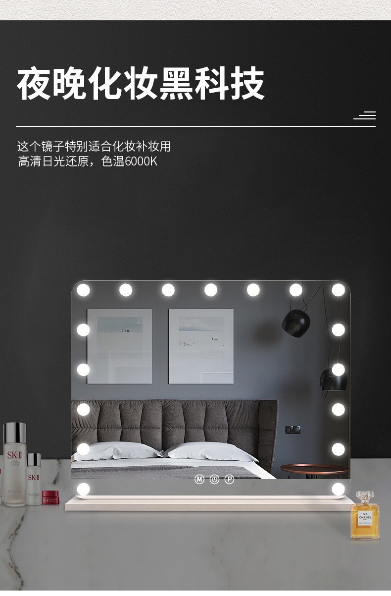 El espejo de maquillaje se puede montar en la pared, sensación premium, espejo recargable grande con luz, dormitorio de estudiantes, escritorio, dormitorio en casa, celebridad de Internet