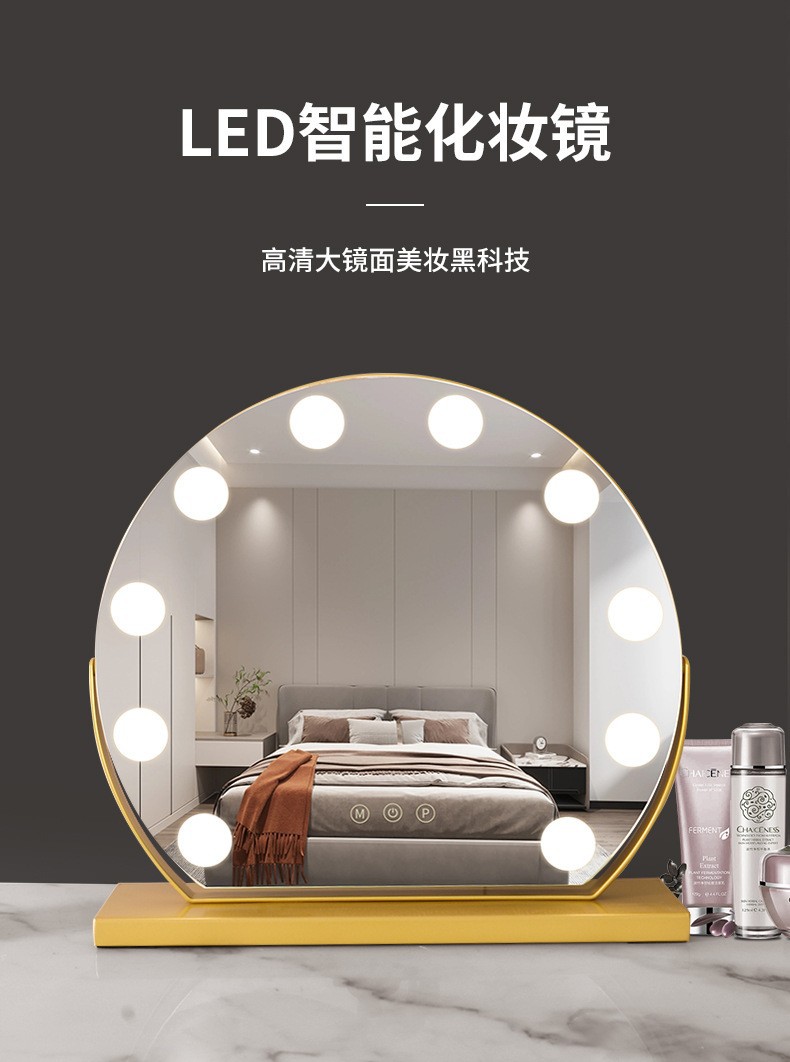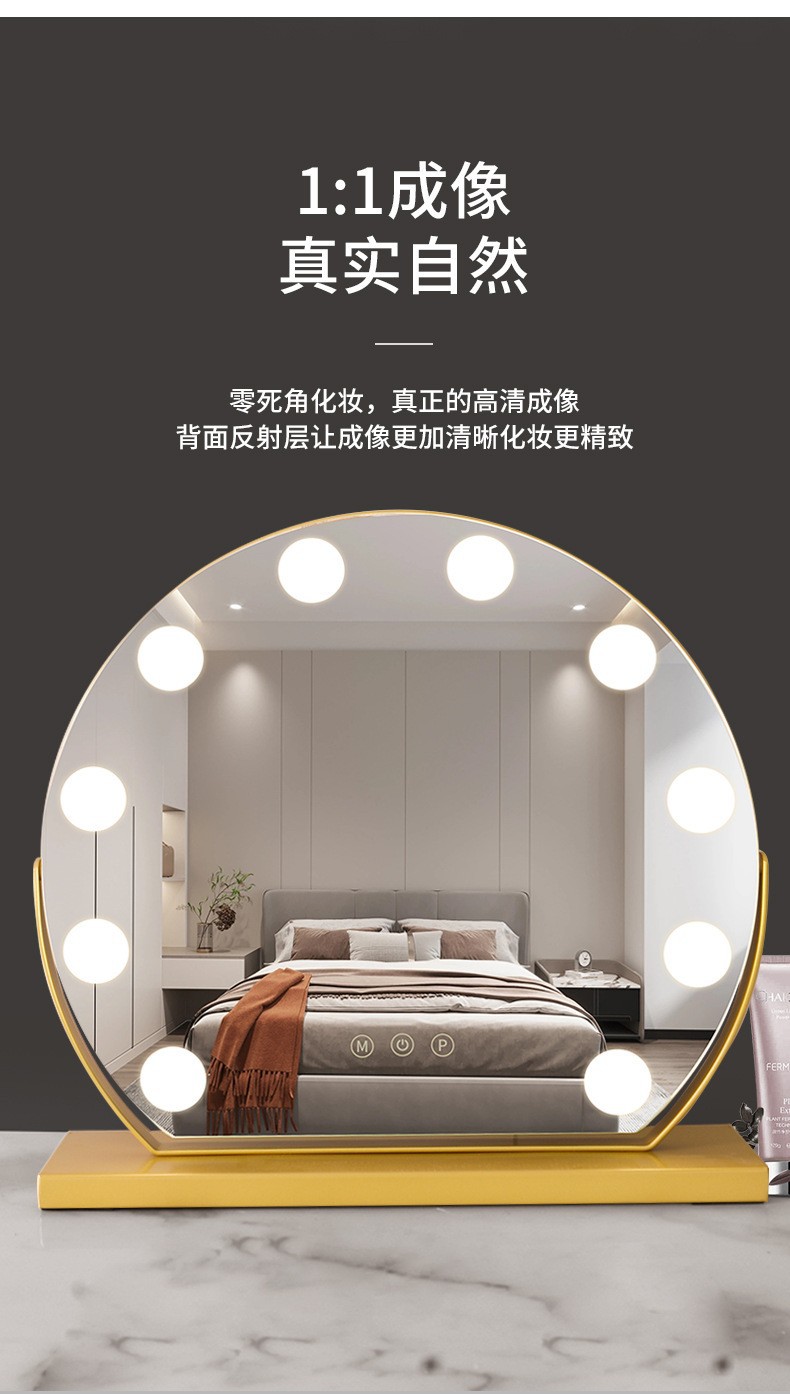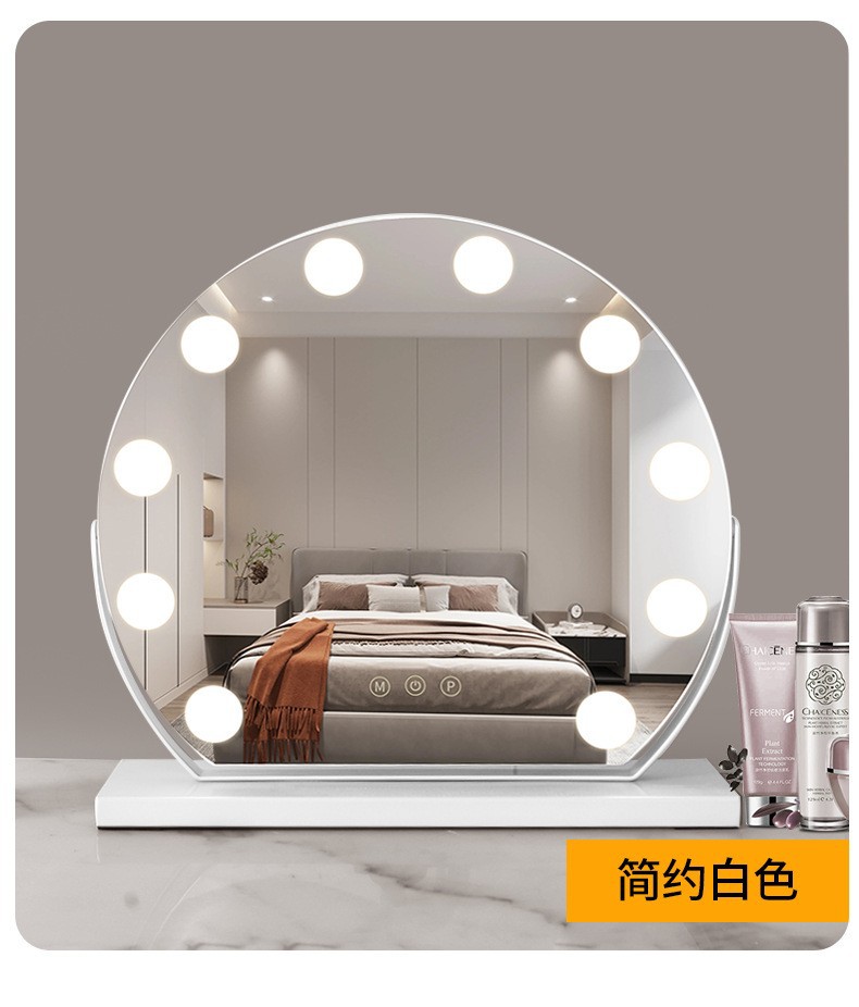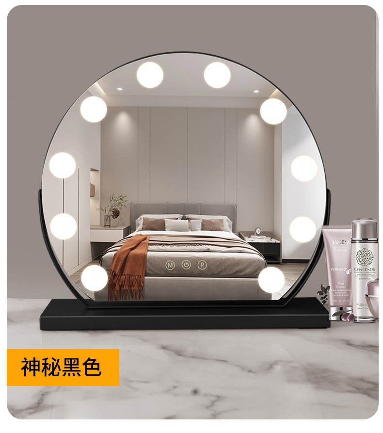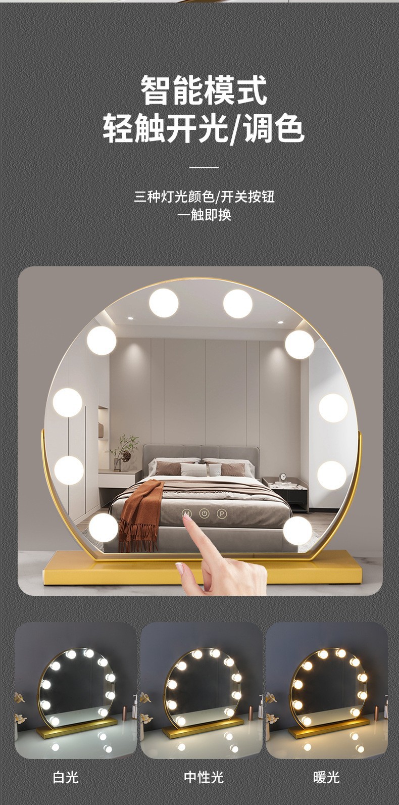 Espejo de maquillaje LED de escritorio con luz de relleno, espejo de tocador grande para dormitorio con luces regulables.