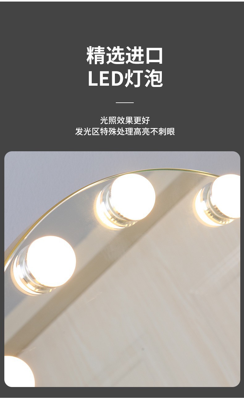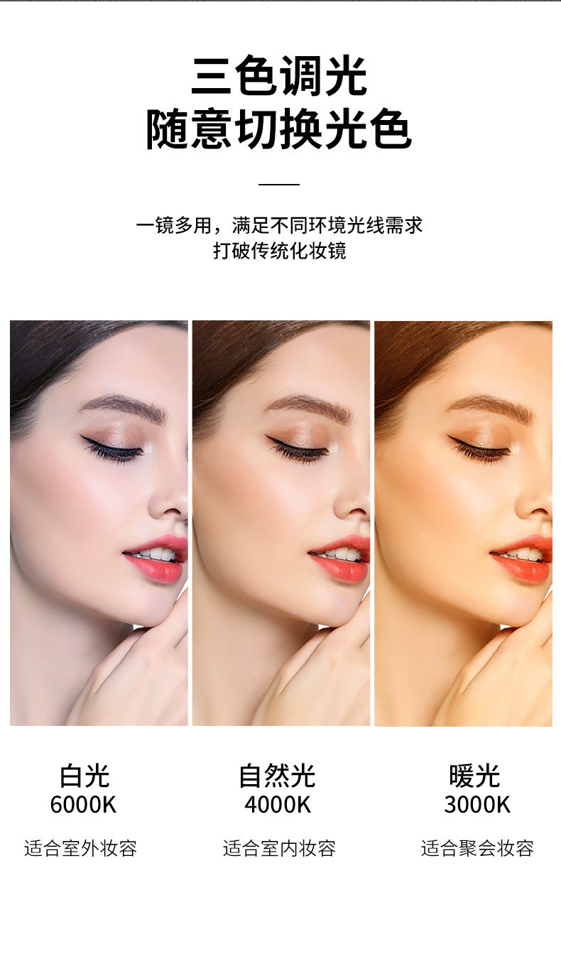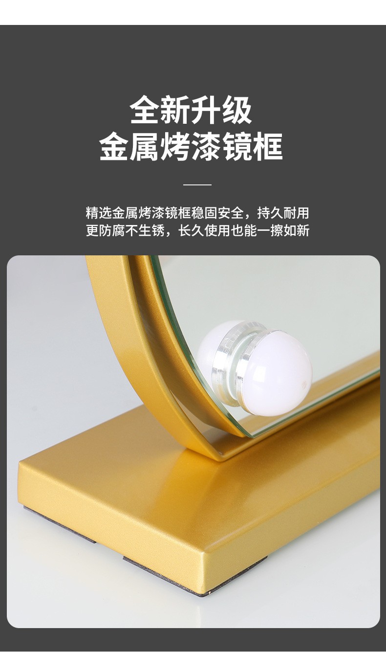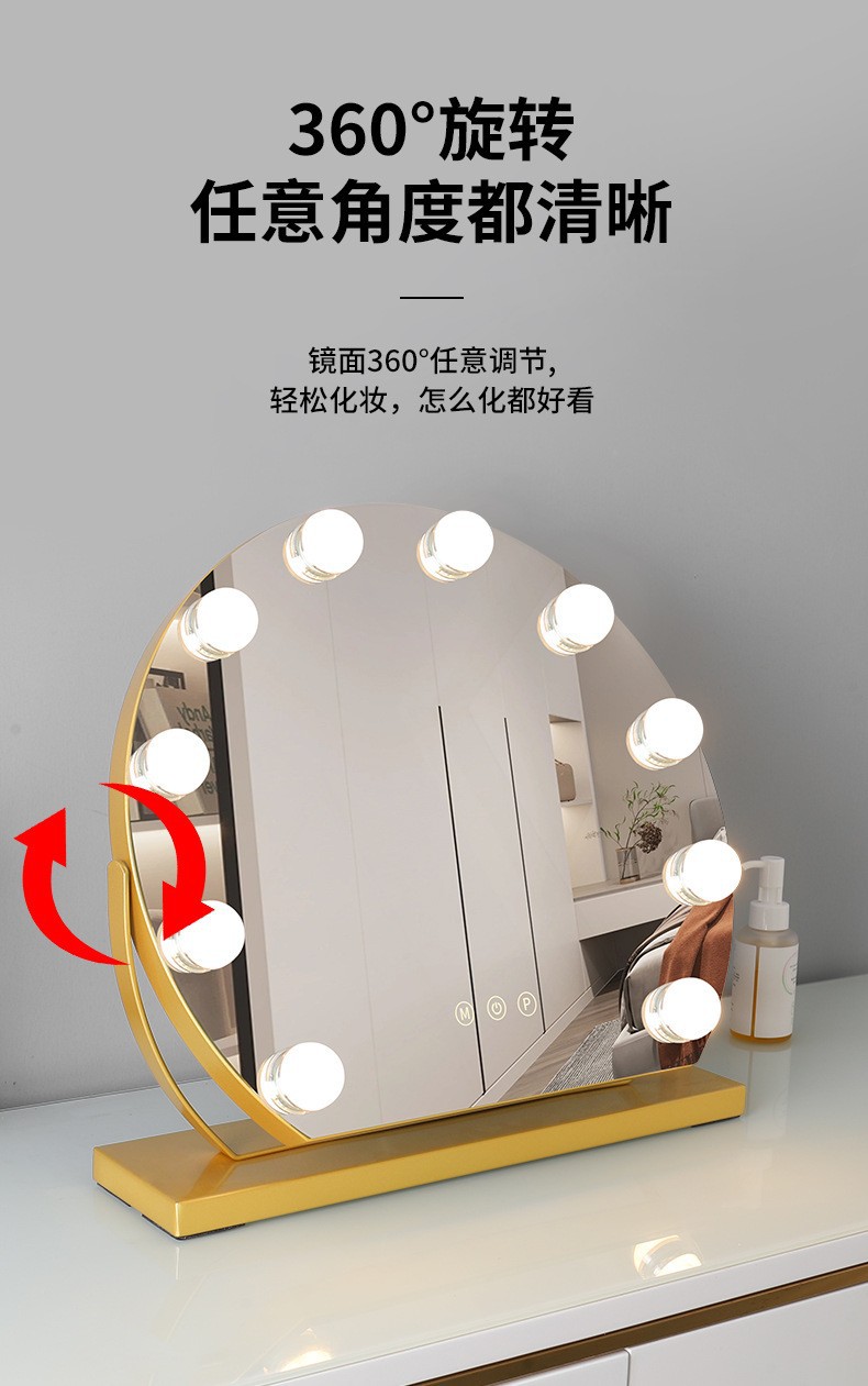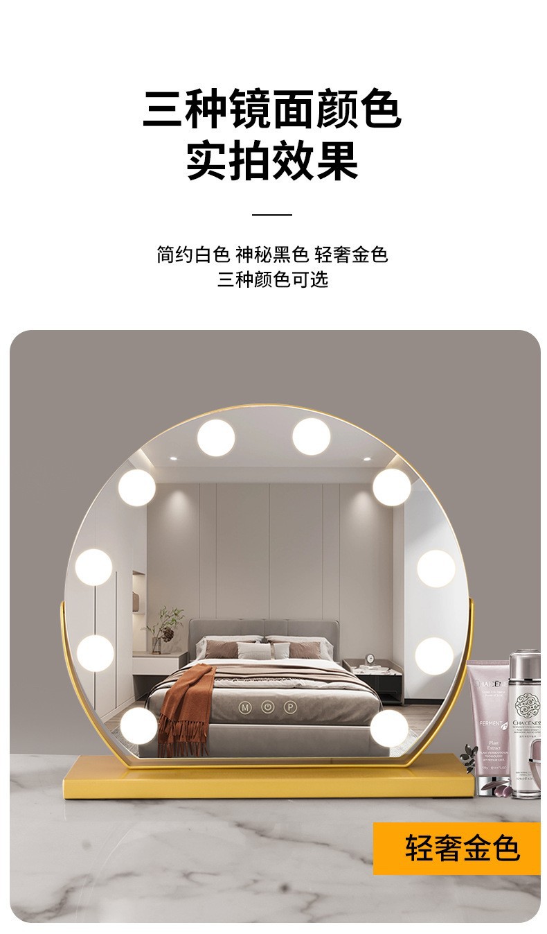 Espejo de maquillaje LED de escritorio con luz de relleno, espejo de tocador grande para dormitorio con luces regulables.
