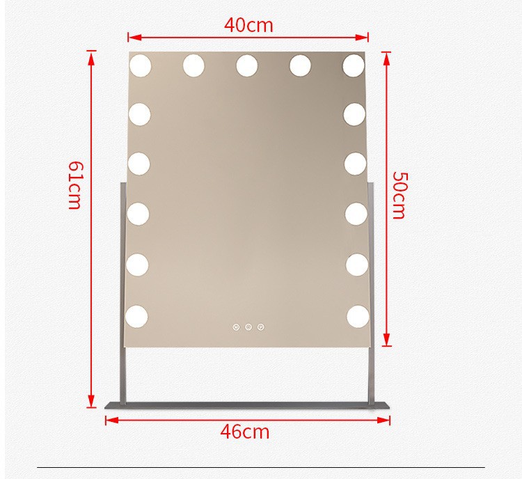Espejo completo de oro 15 bombillas enchufables (tres colores luminosos + atenuación sin electrodos)