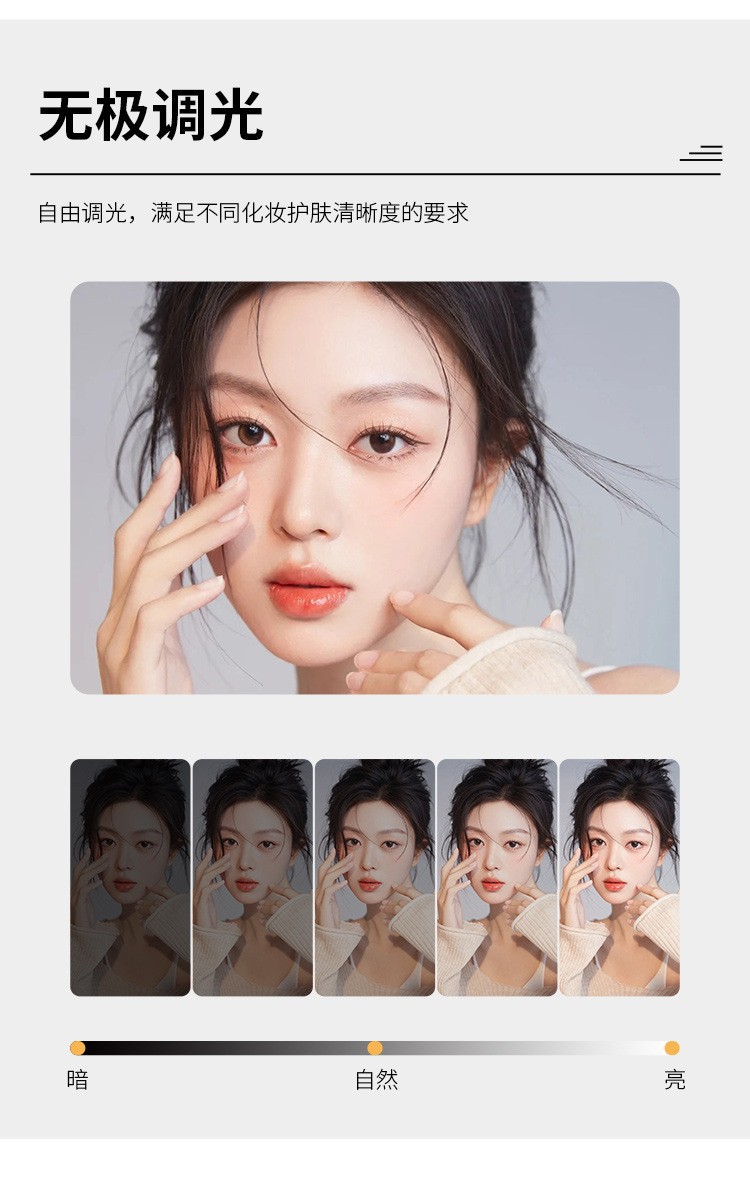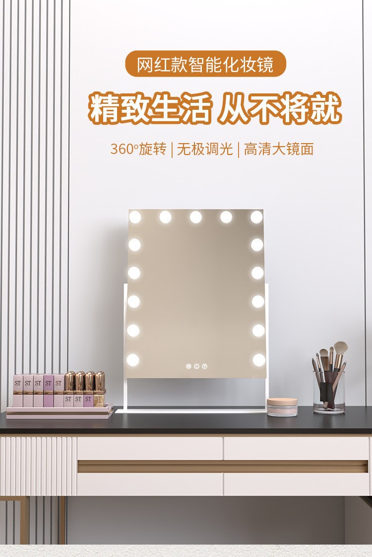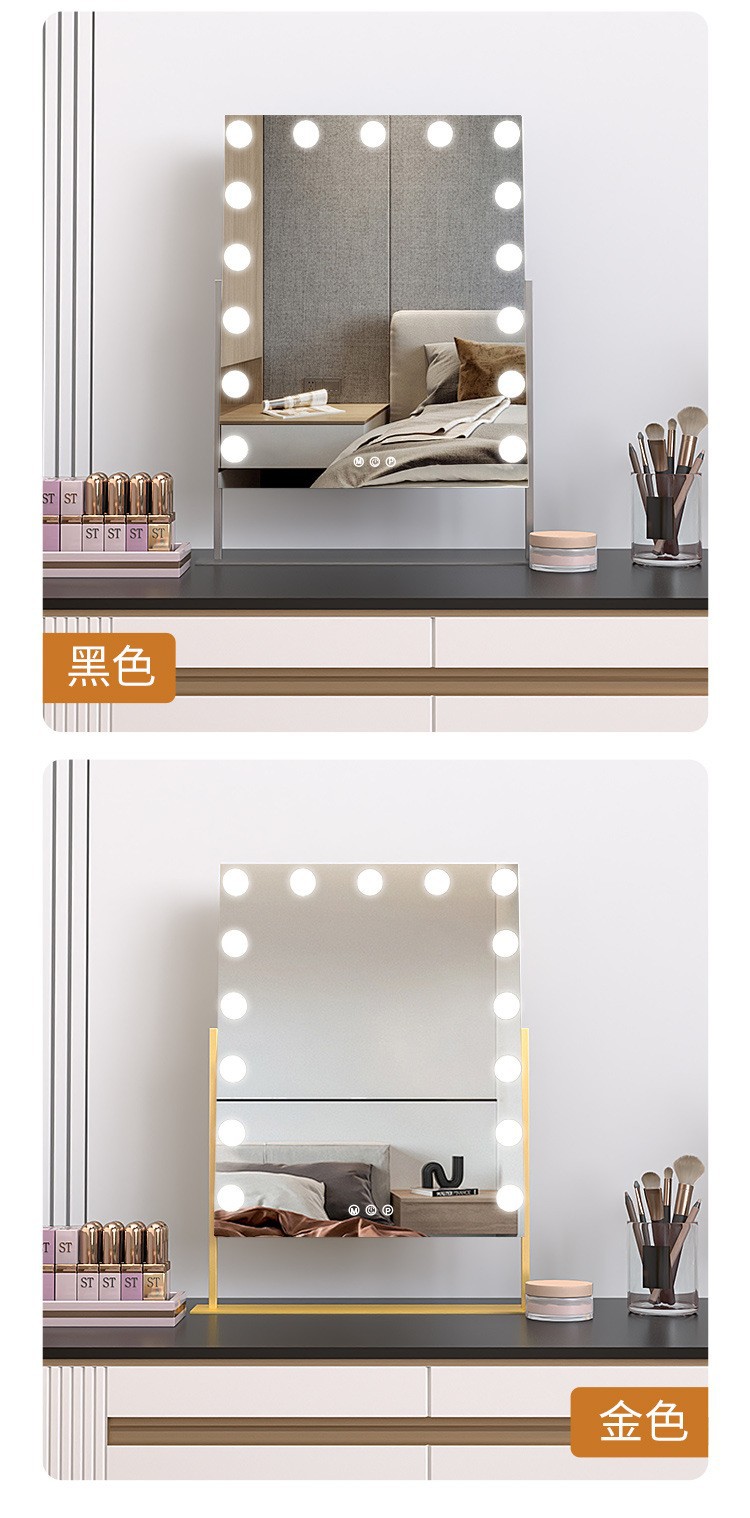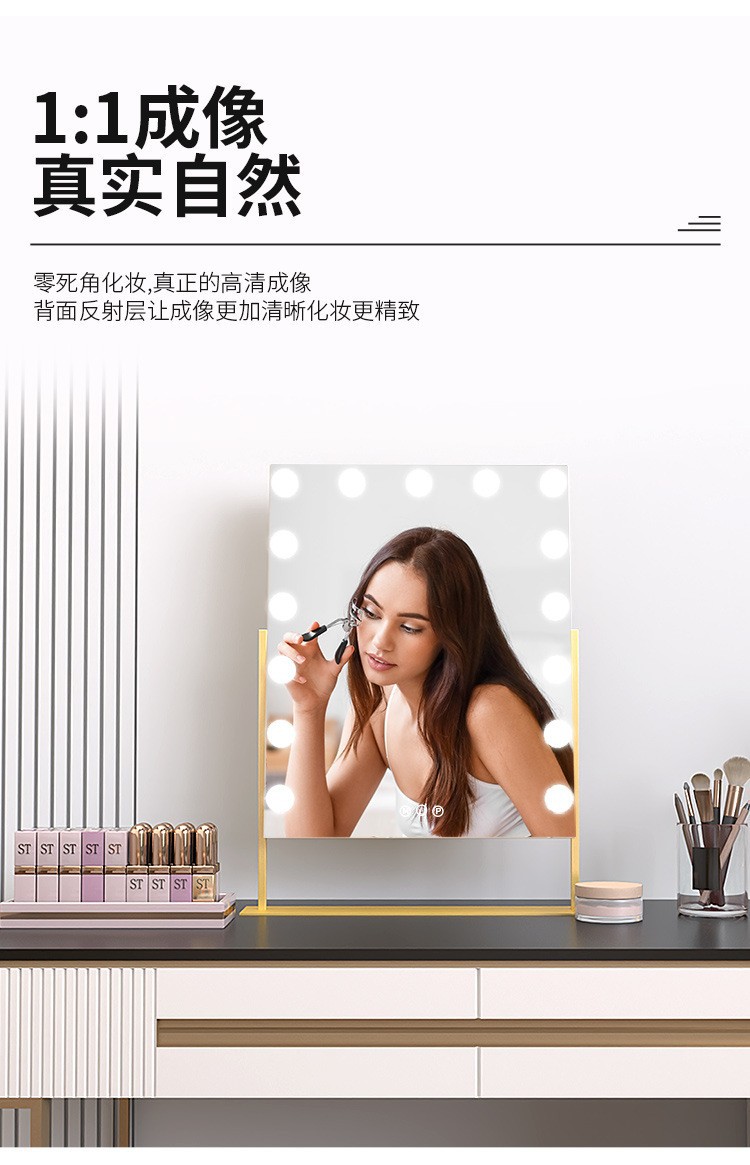Espejo completo de oro 18 bombillas recargables (tres colores luminosos + atenuación sin electrodos)