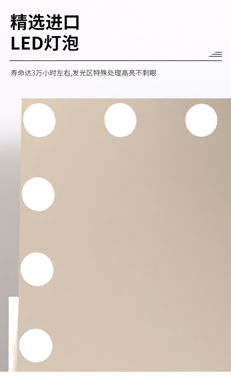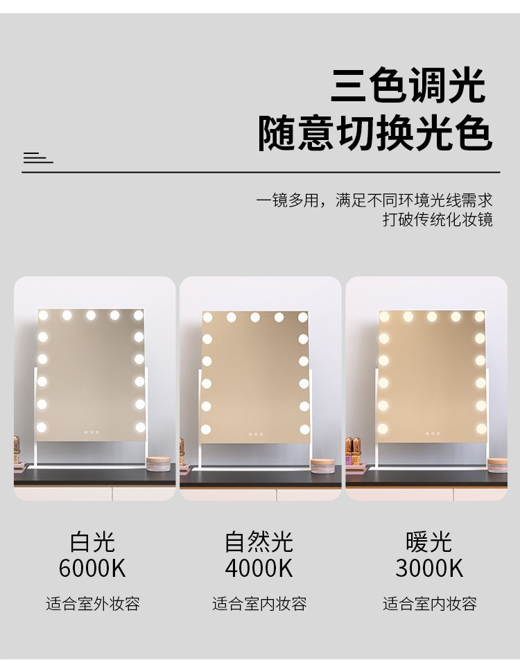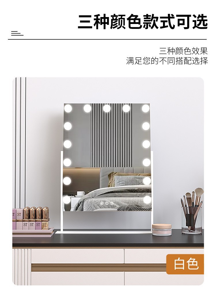 Espejo blanco completo 15 bombillas enchufables (tres colores luminosos + atenuación sin electrodos)