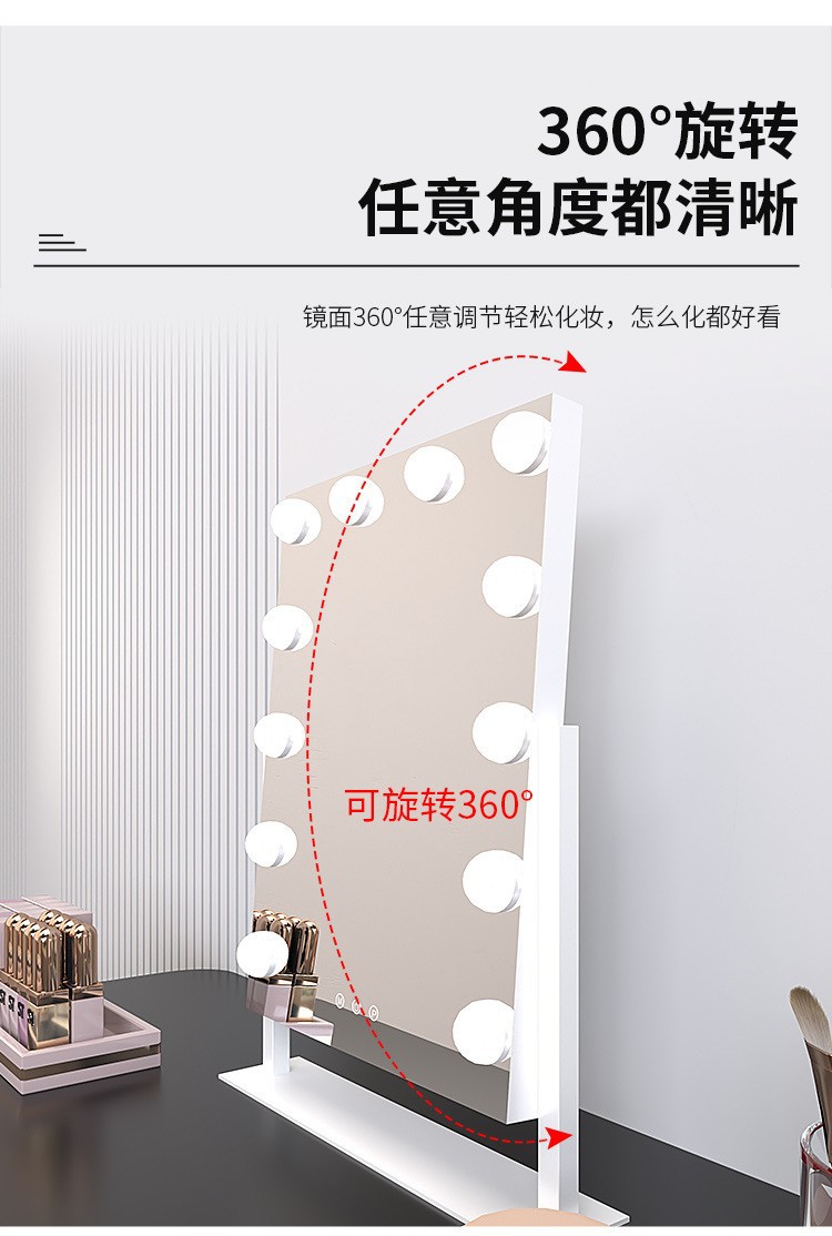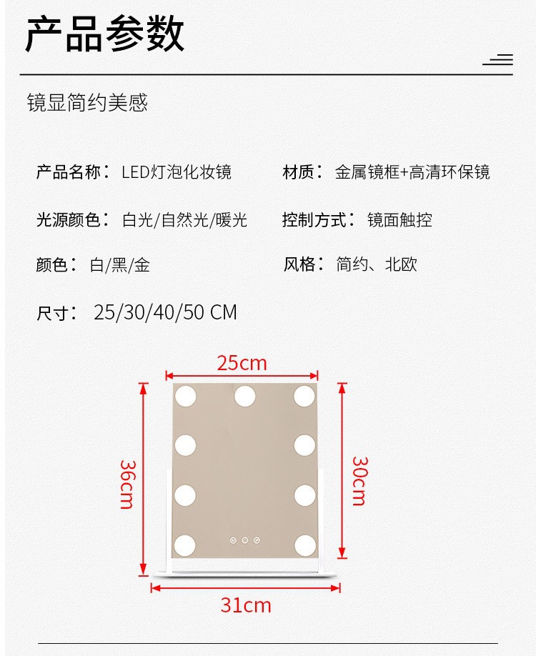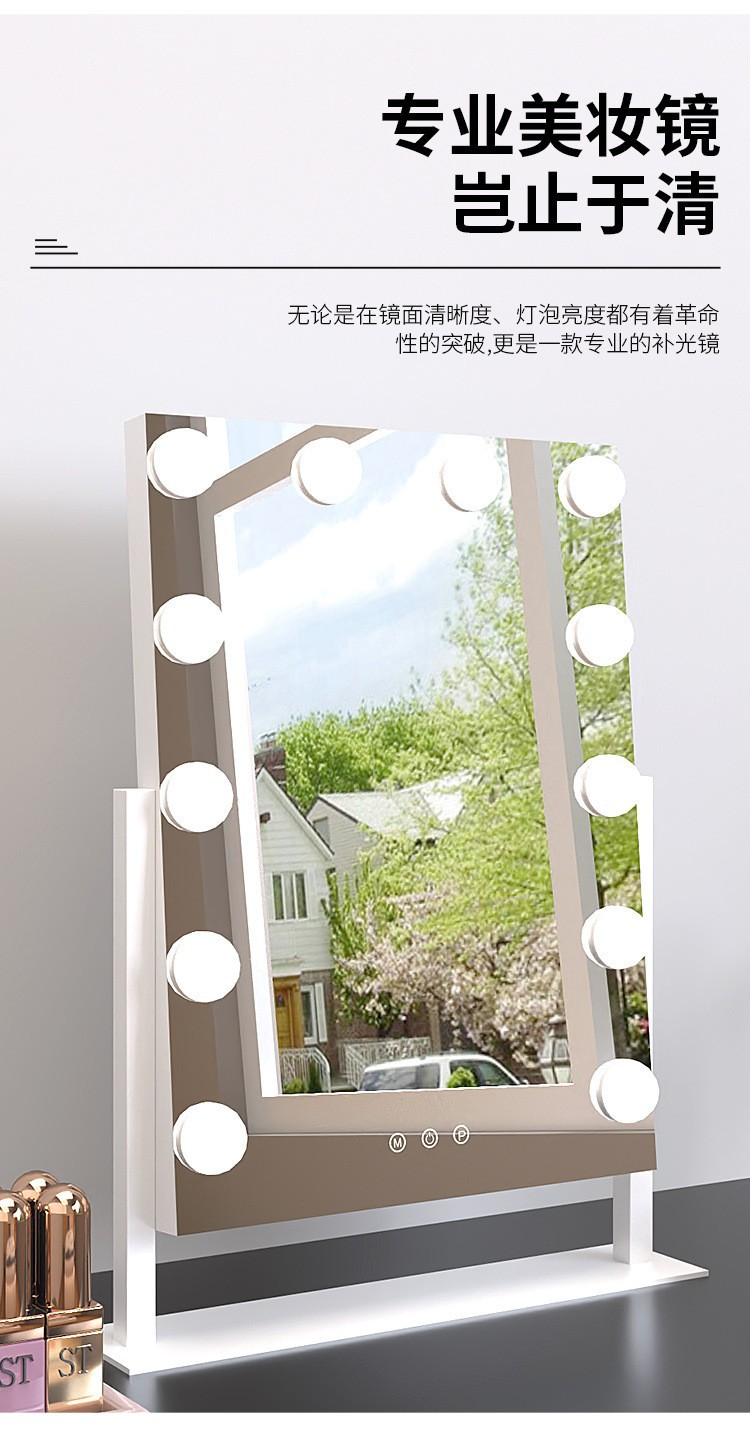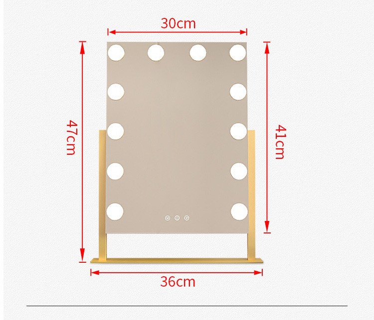 Espejo completo de oro 12 bombillas enchufables (tres colores luminosos + atenuación sin electrodos)
