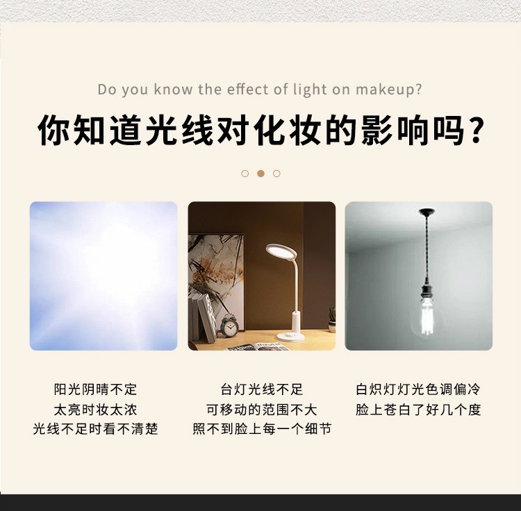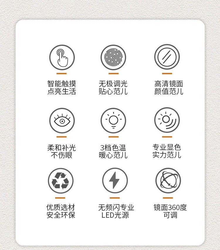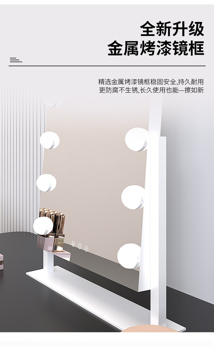 Espejo completo blanco 9 bombillas recargables (tres colores luminosos + atenuación sin electrodo)