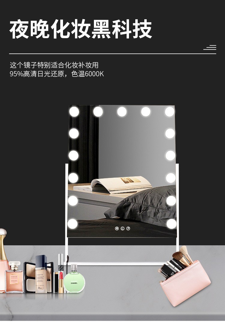 Espejo completo de oro 15 bombillas recargables (tres colores luminosos + atenuación sin electrodos)