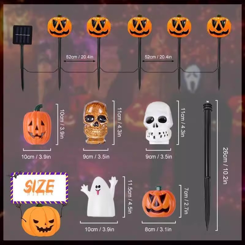 Luces de Halloween transfronterizas, escenas del festival de fantasmas, arreglos de atmósfera, luces de tierra, calabazas solares, fantasmas, luces de jardín al aire libre