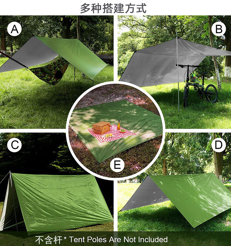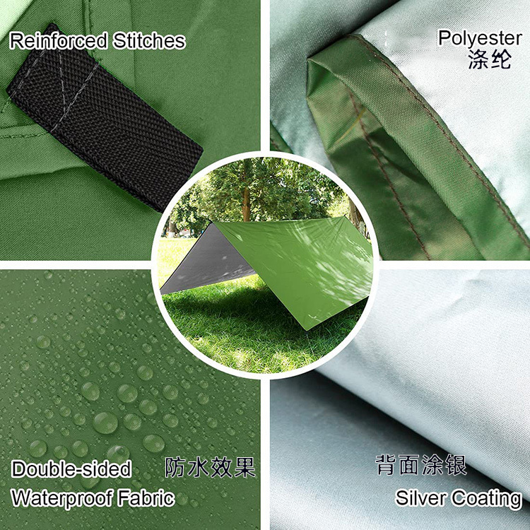 Venta directa de fábrica al aire libre 3-4 personas cubierta de cielo cubierta de plata cubierta de playa tienda de camping tela de piso impermeable tapete a prueba de humedad triángulo