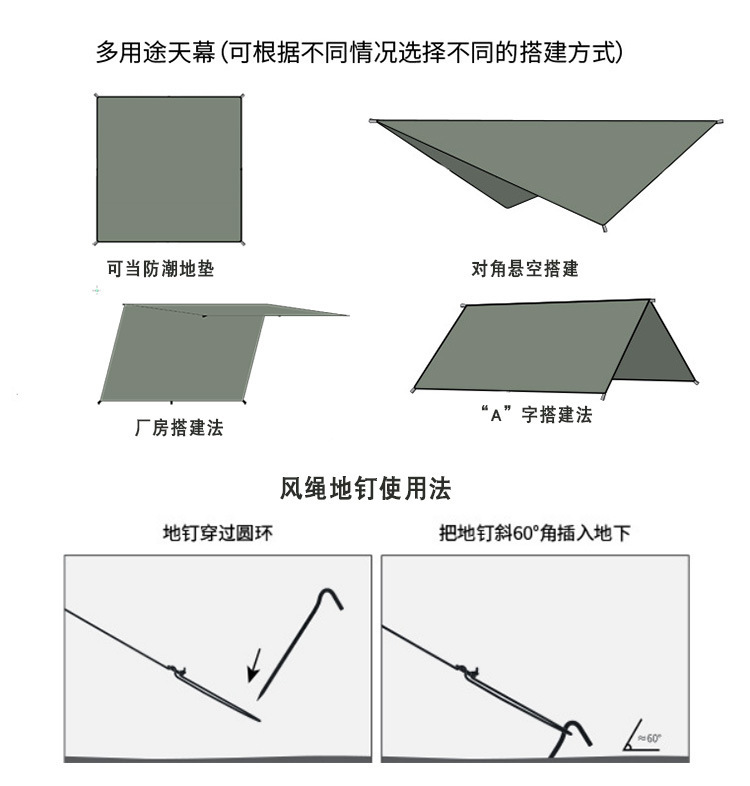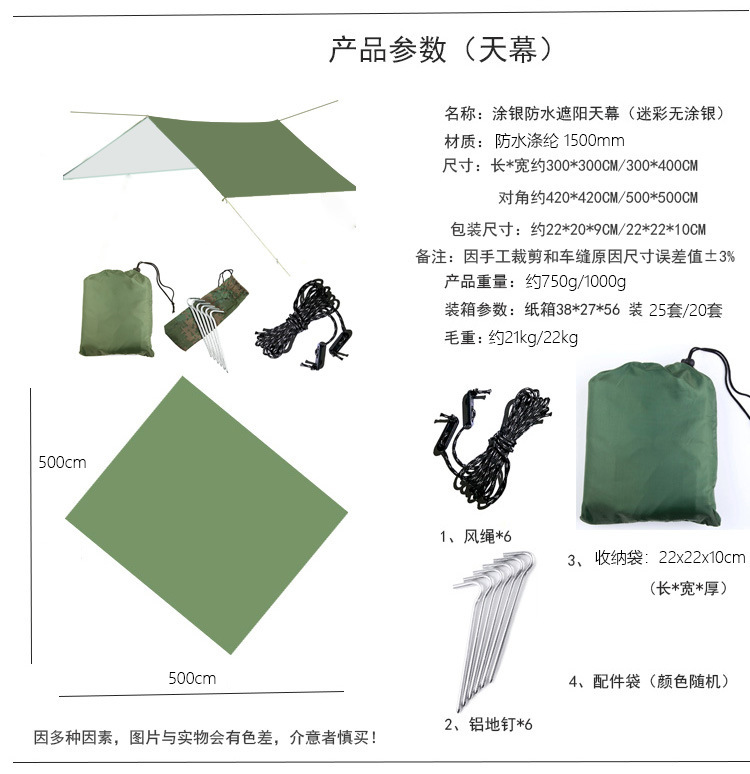 | Tamaño | 100*145CM tela de suelo sin accesorios,Cubierta de 300*300CM con clavos de aluminio de cuerda de viento en blanco y negro,300*400CM con techo de aluminio de cuerda de viento blanco y negro |