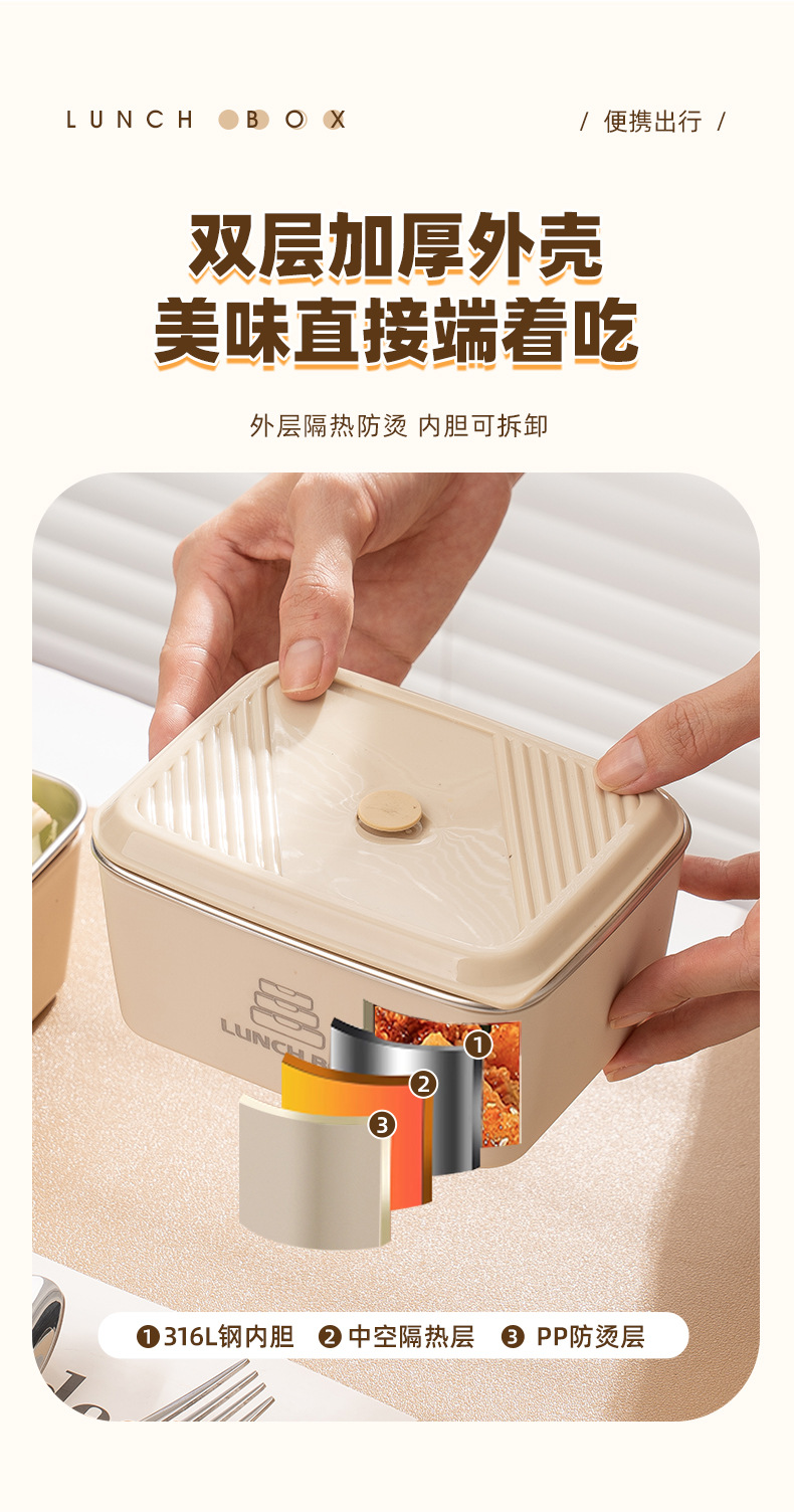 Viajes de estudiantes caseros a prueba de fugas preservación fresca aislamiento caja de almuerzo de acero inoxidable doble sellado con cubierta dormitorio puede microondas caja de almuerzo