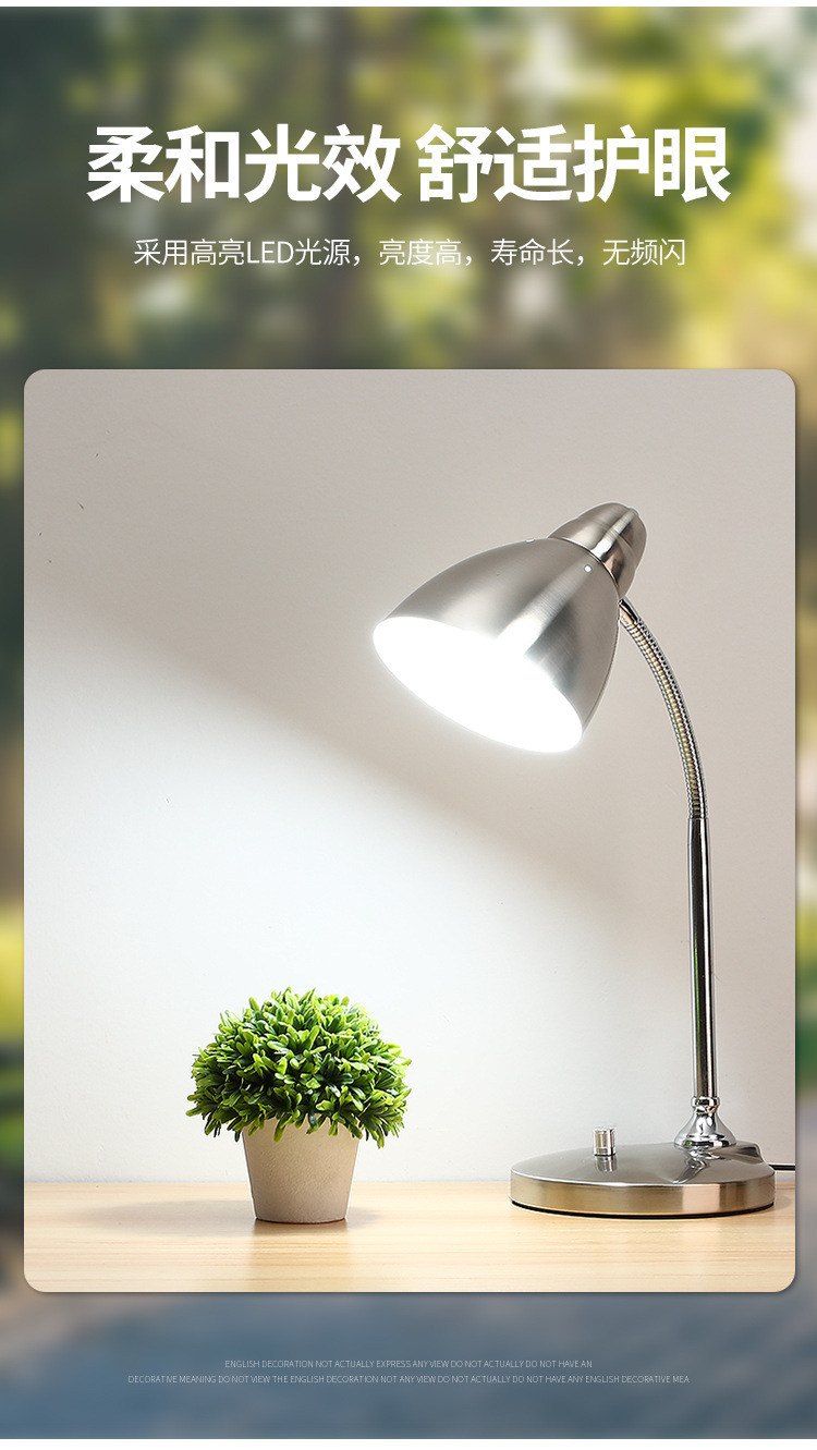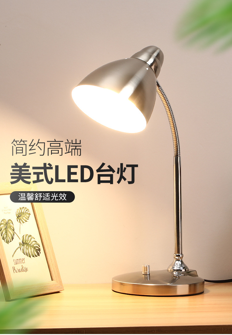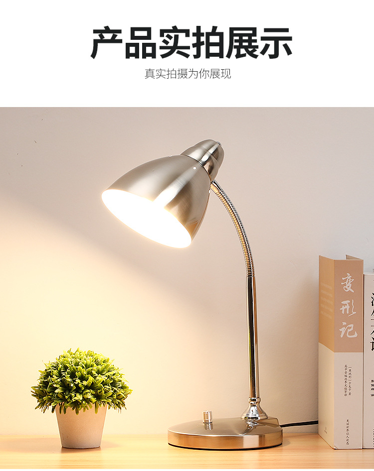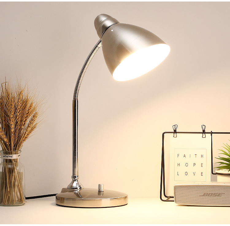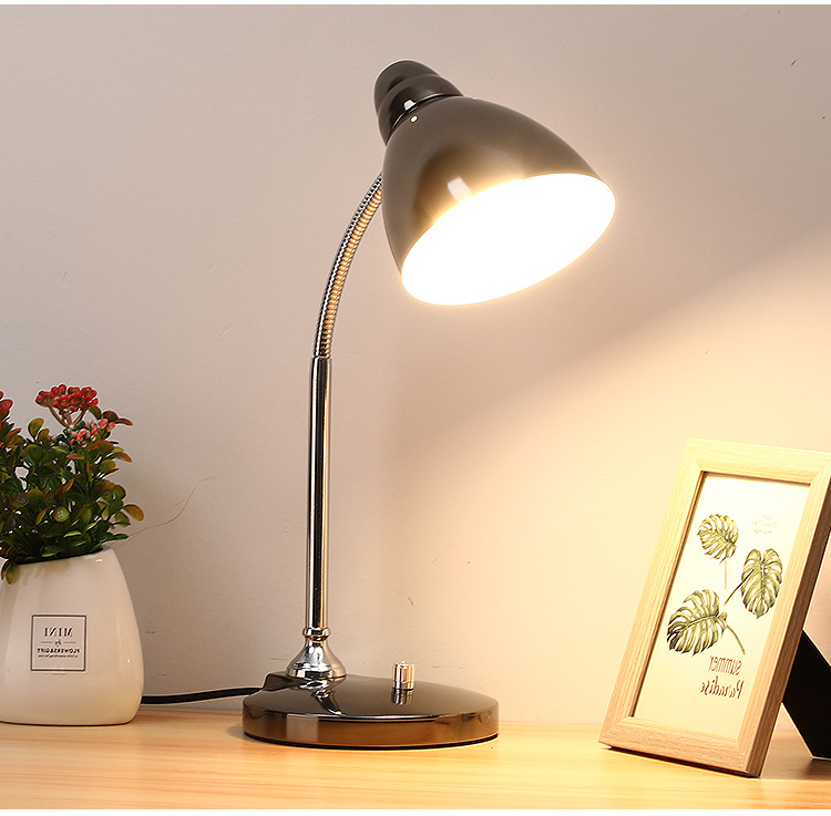 Clásica vieja lámpara de mesa de metal escritorio para aprender enchufe de ojo enchufe eléctrico estudio delicado tornillo de bombilla intercambiable