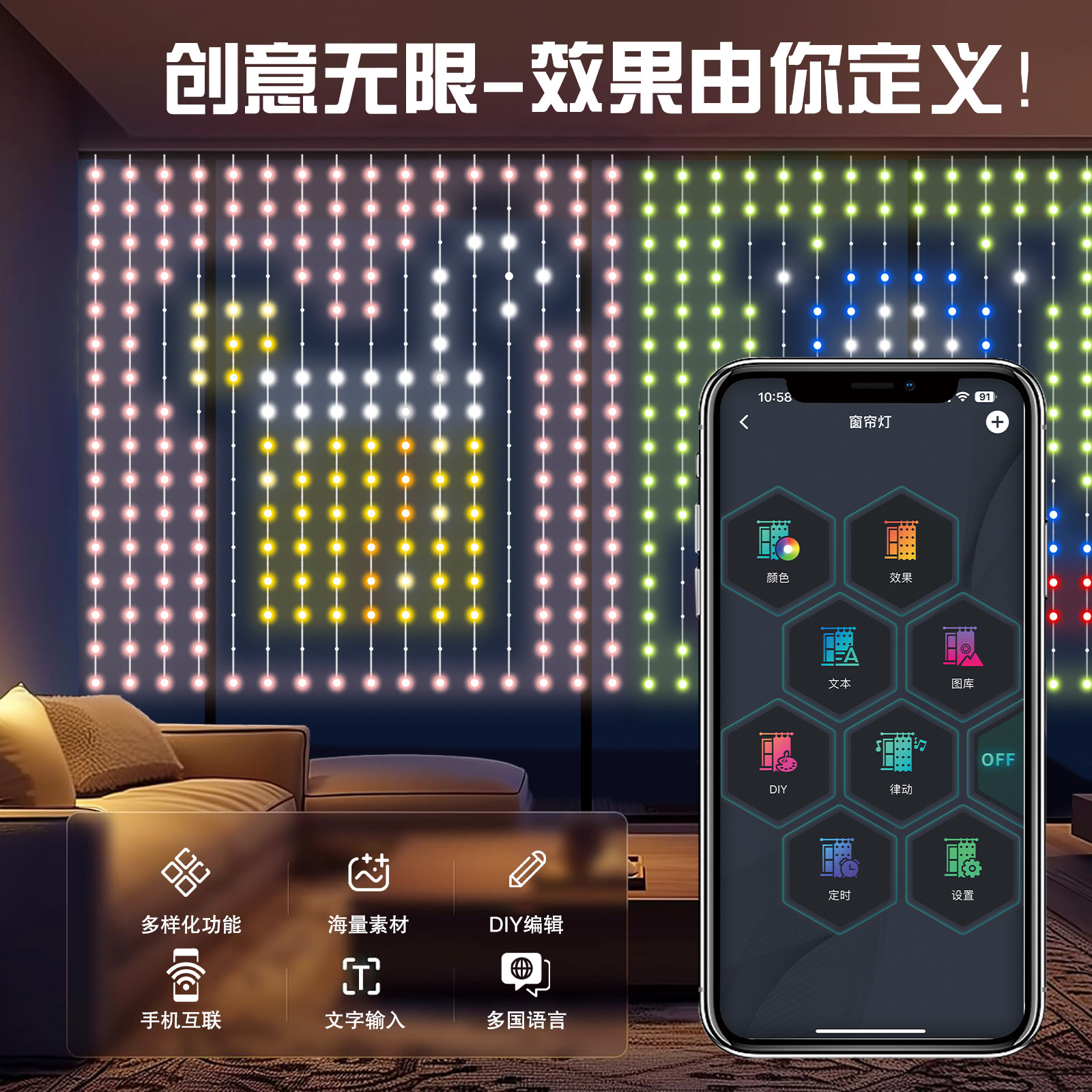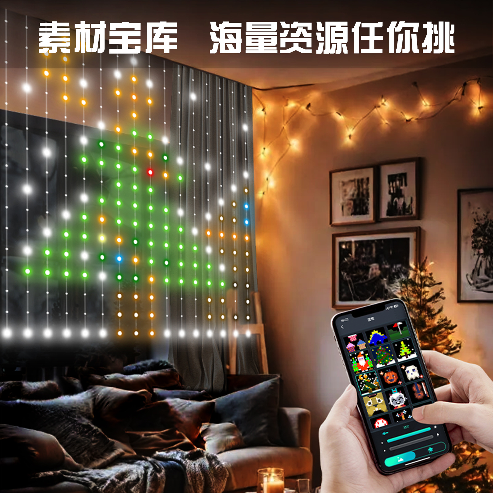 Nuevas luces de hilo de cuero transfronterizas, luces de cortina, luces de Navidad de cadena, luces decorativas, luces LED de cadena, luces de Navidad de vacaciones USB