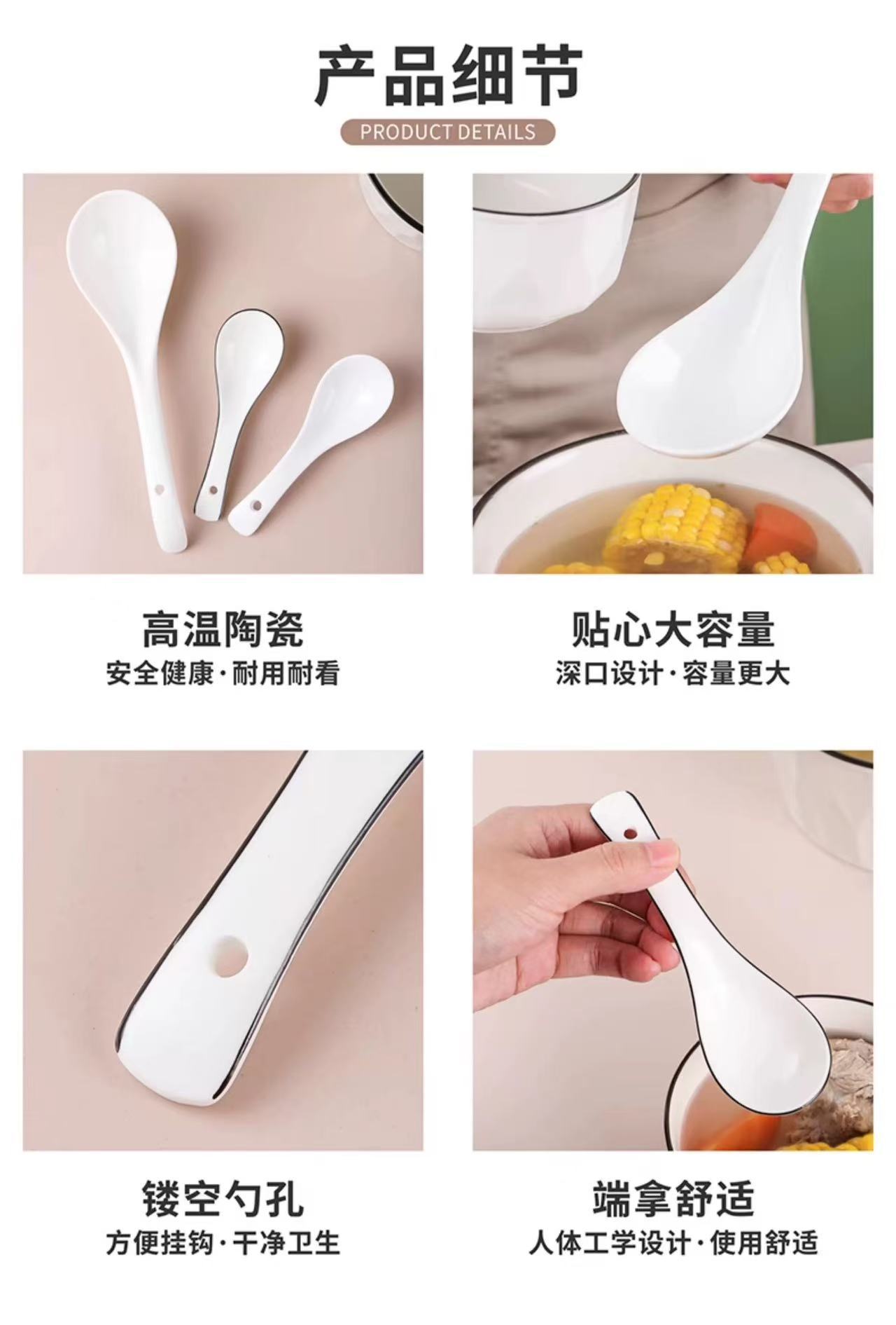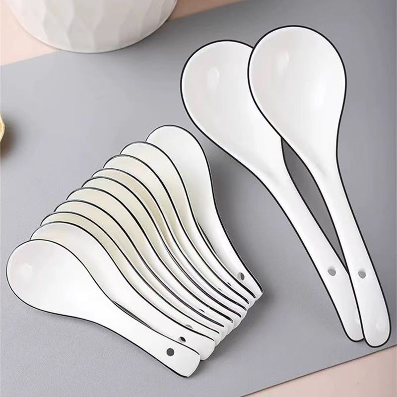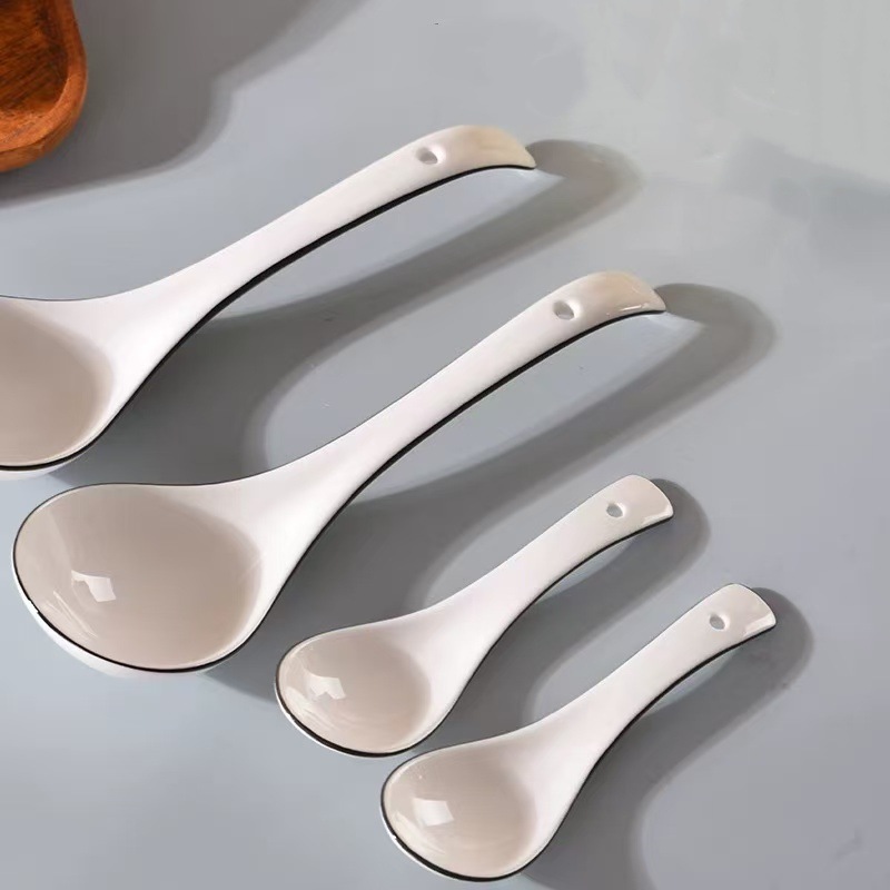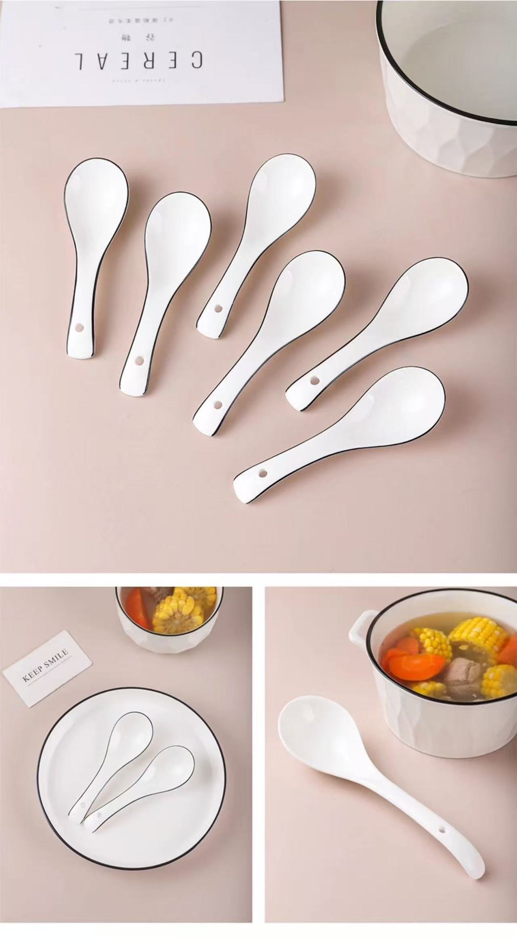 Simple línea negra cuchara de cerámica doméstica cuchara de comedor cuchara de mango largo sopa de restaurante cuchara de restaurante cuchara pequeña