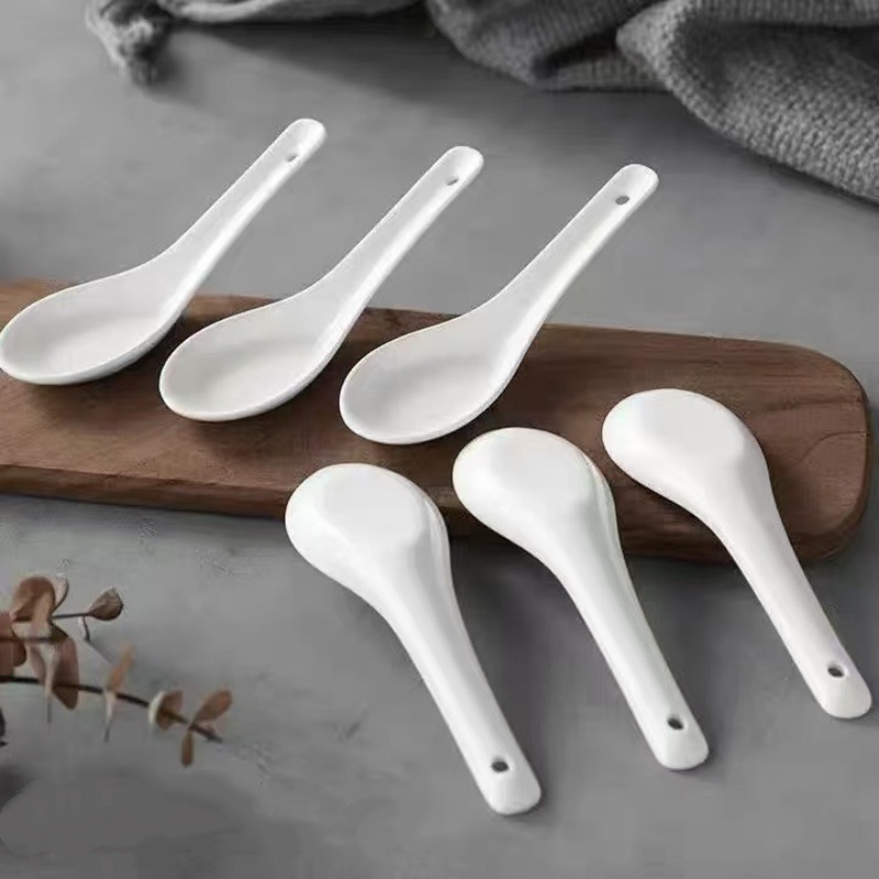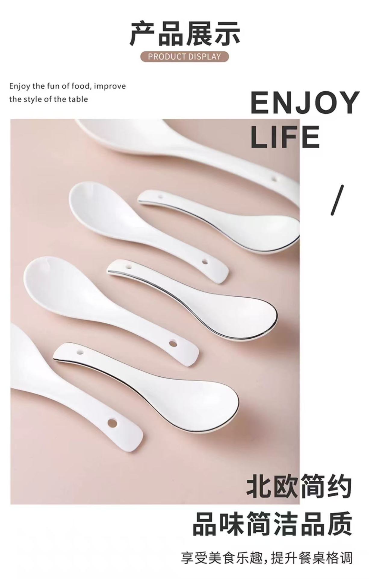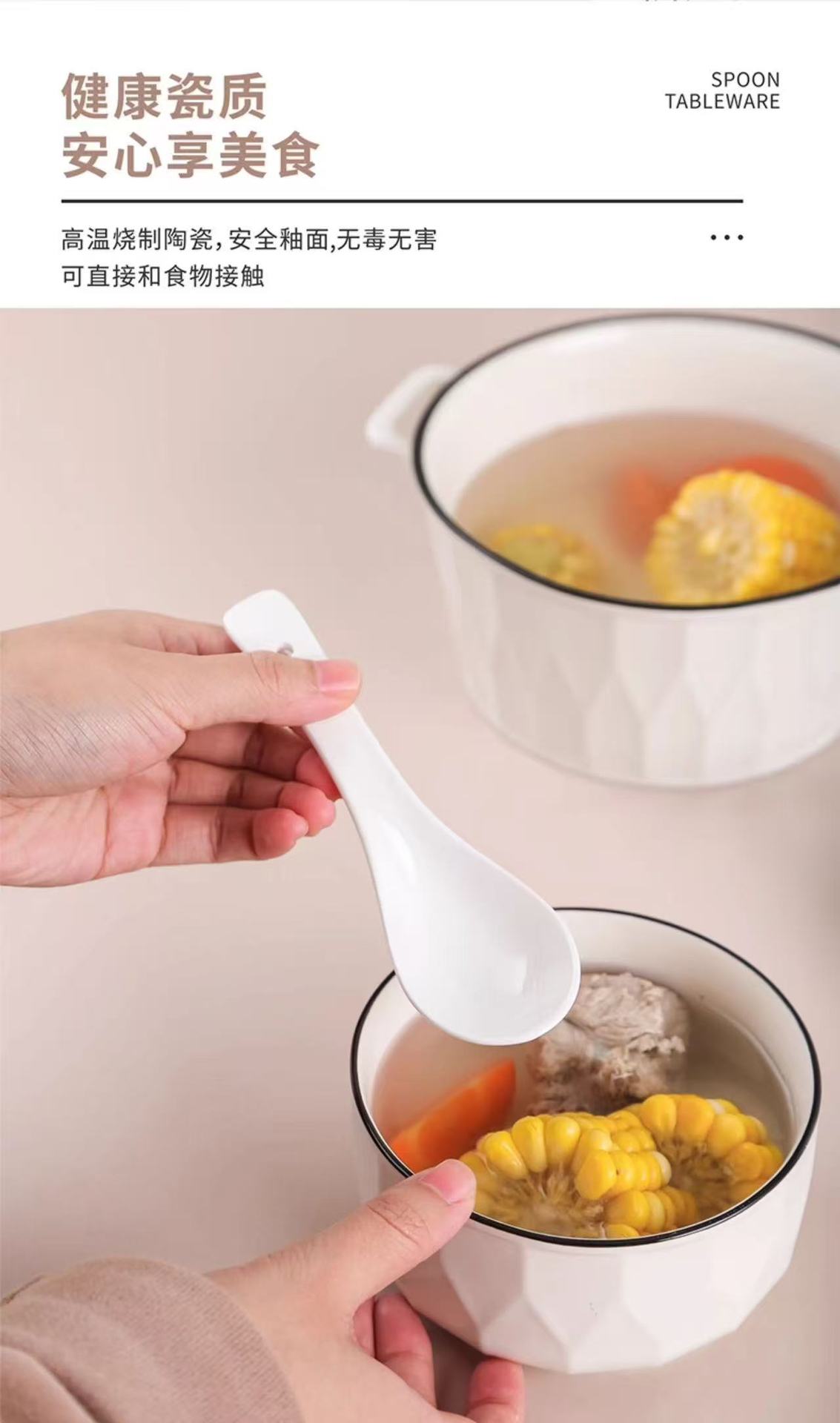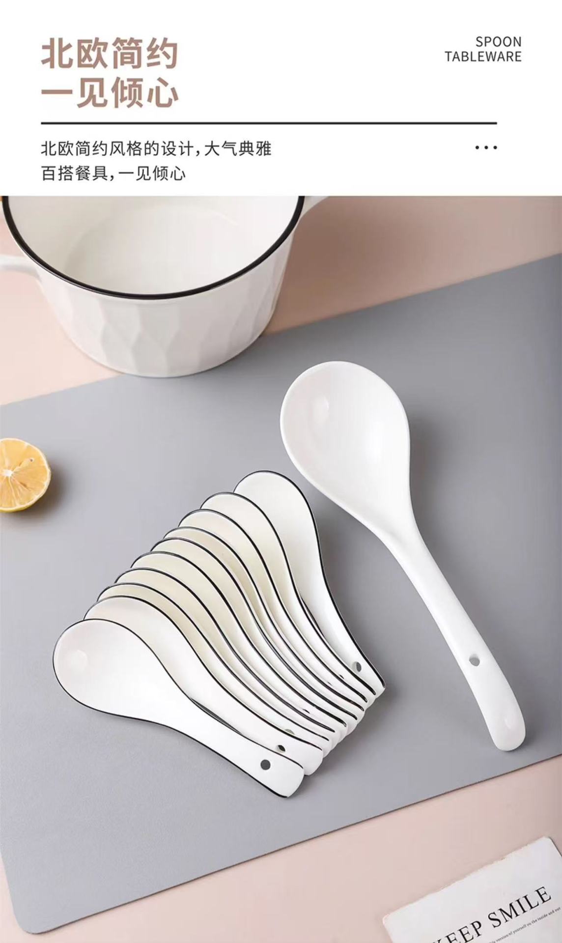Simple línea negra cuchara de cerámica doméstica cuchara de comedor cuchara de mango largo sopa de restaurante cuchara de restaurante cuchara pequeña