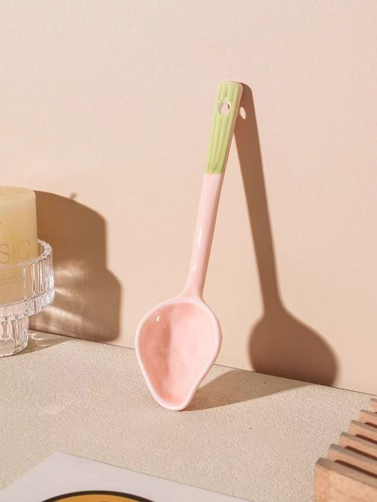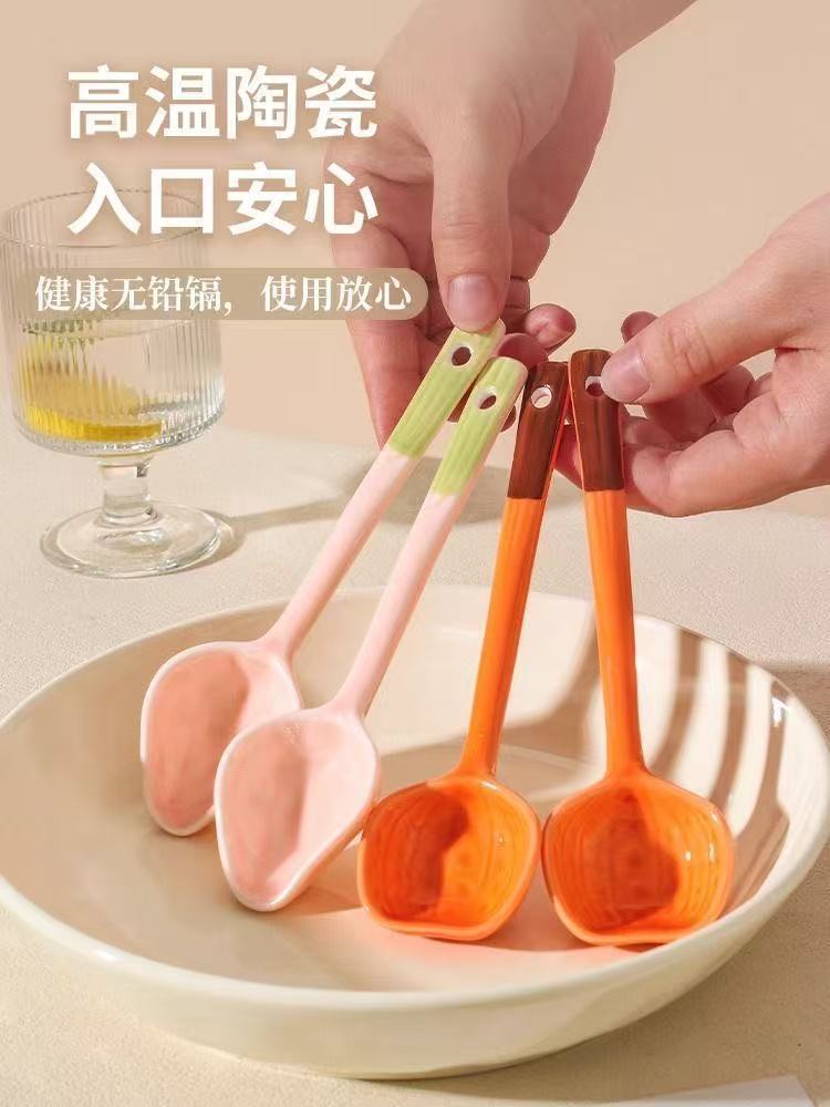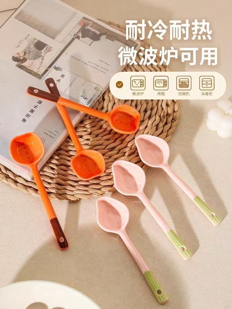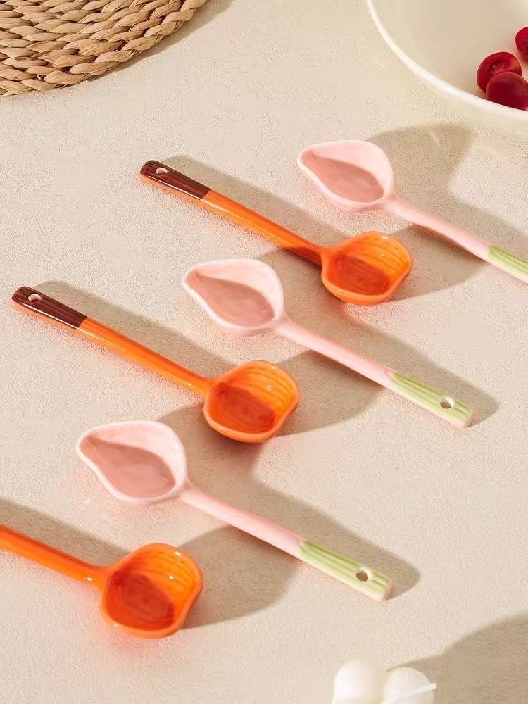 Cucharas de calabaza de cerámica creativa encantadora cucharas de fresa cucharas de postre cucharas de mango largo cucharas de alto valor