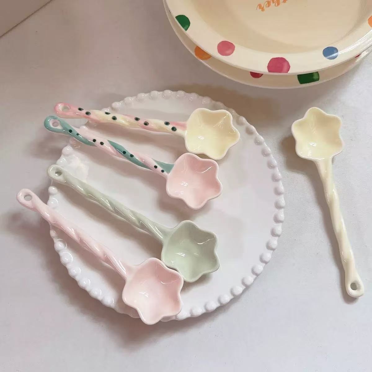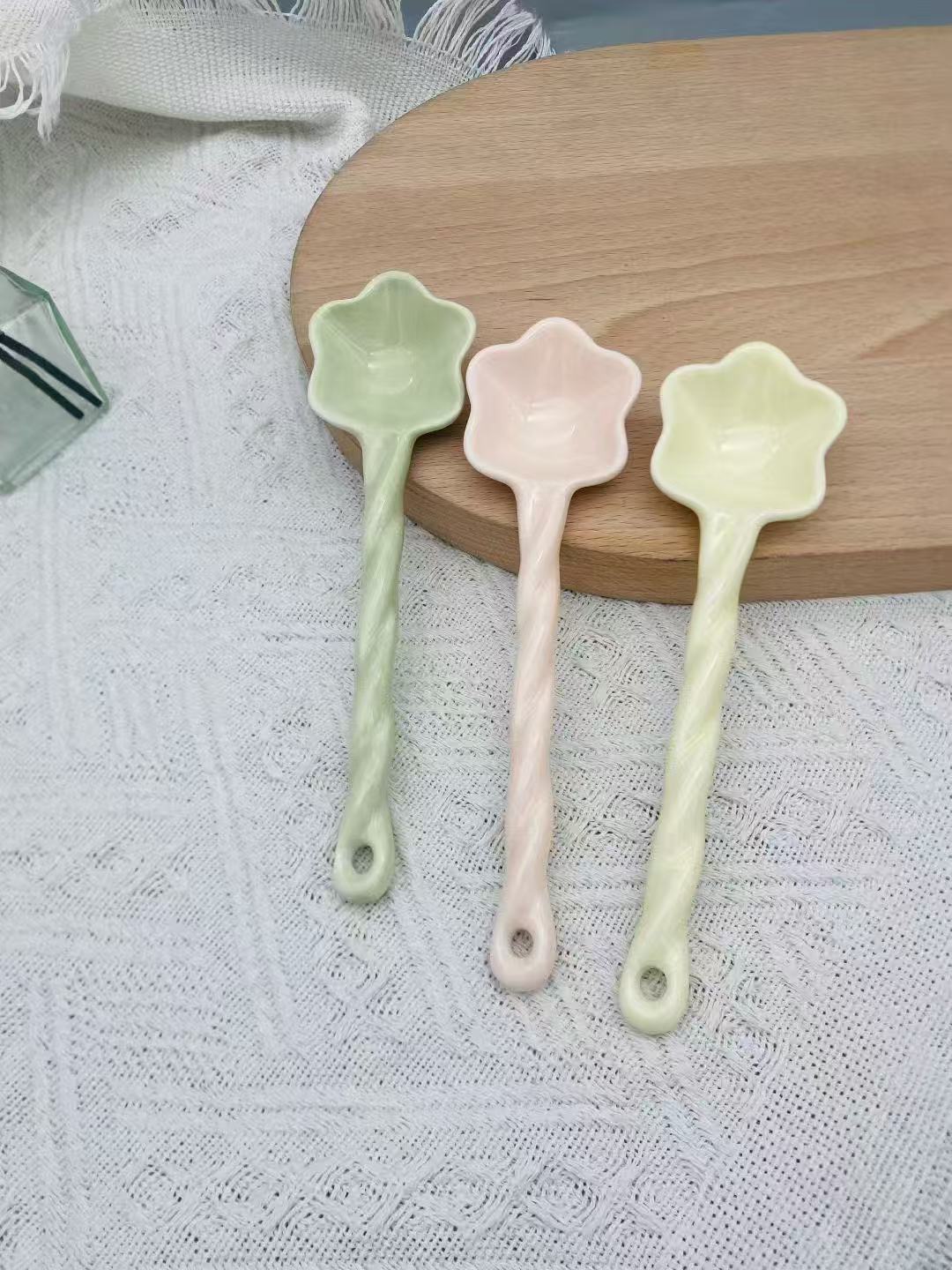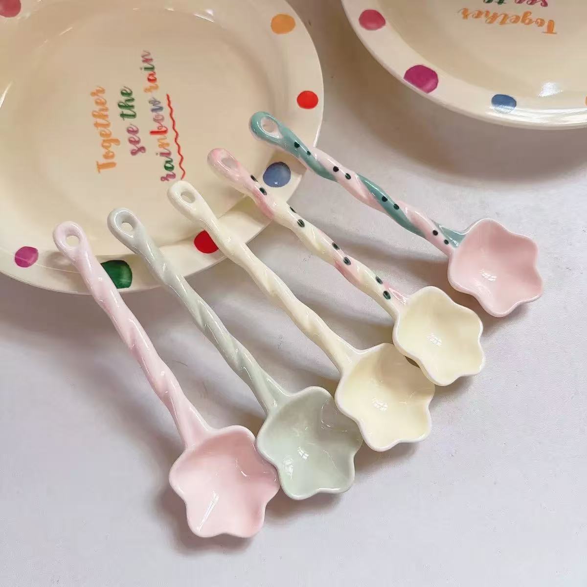 Cucharas de calabaza de cerámica creativa encantadora cucharas de fresa cucharas de postre cucharas de mango largo cucharas de alto valor