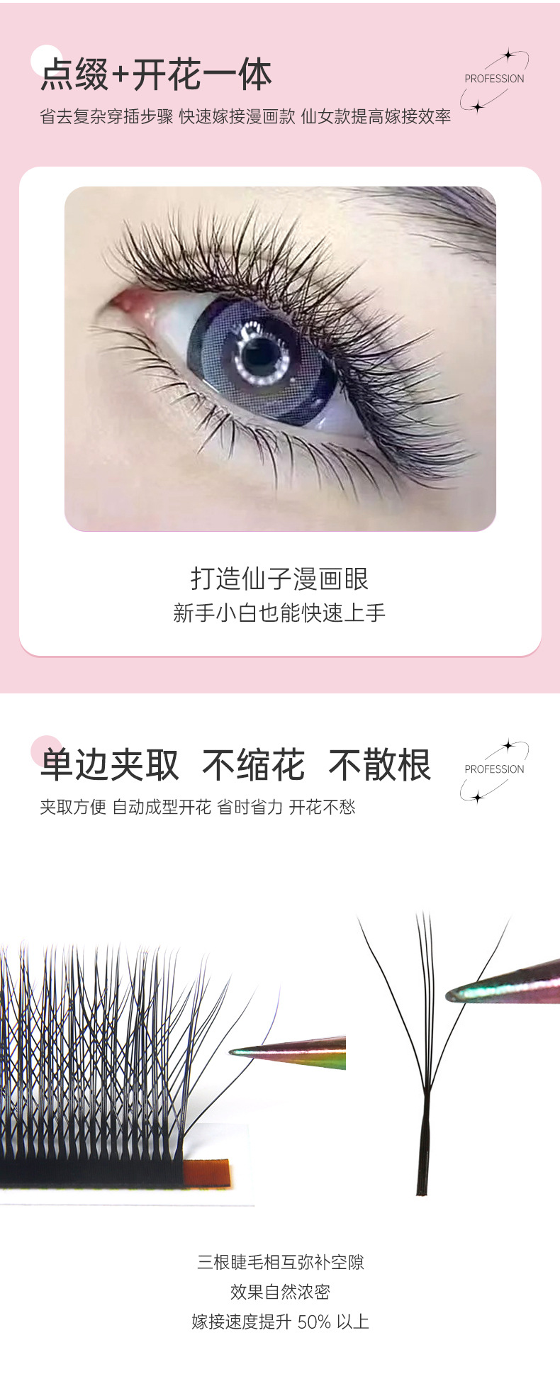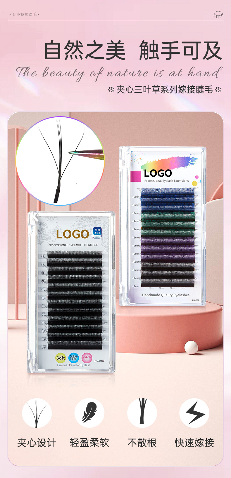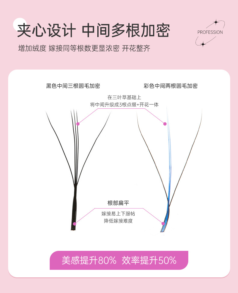 Fábrica de pestañas de color especial para pestañas 0.07 super suave no dispersar raíces 3D cómic sándwich injerto de pestañas de trébol