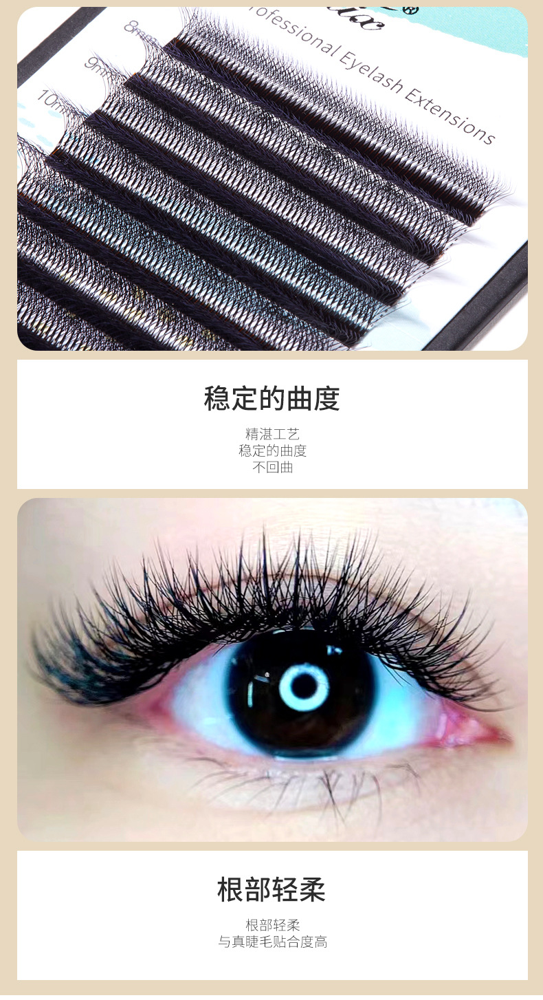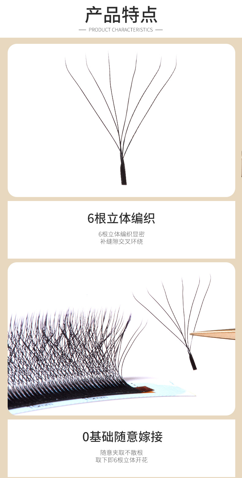 Fábrica de pestañas 6D florecer europeas y americanas pestañas falsas curvas naturales C mezcladas densas pestañas injerto de hexagram