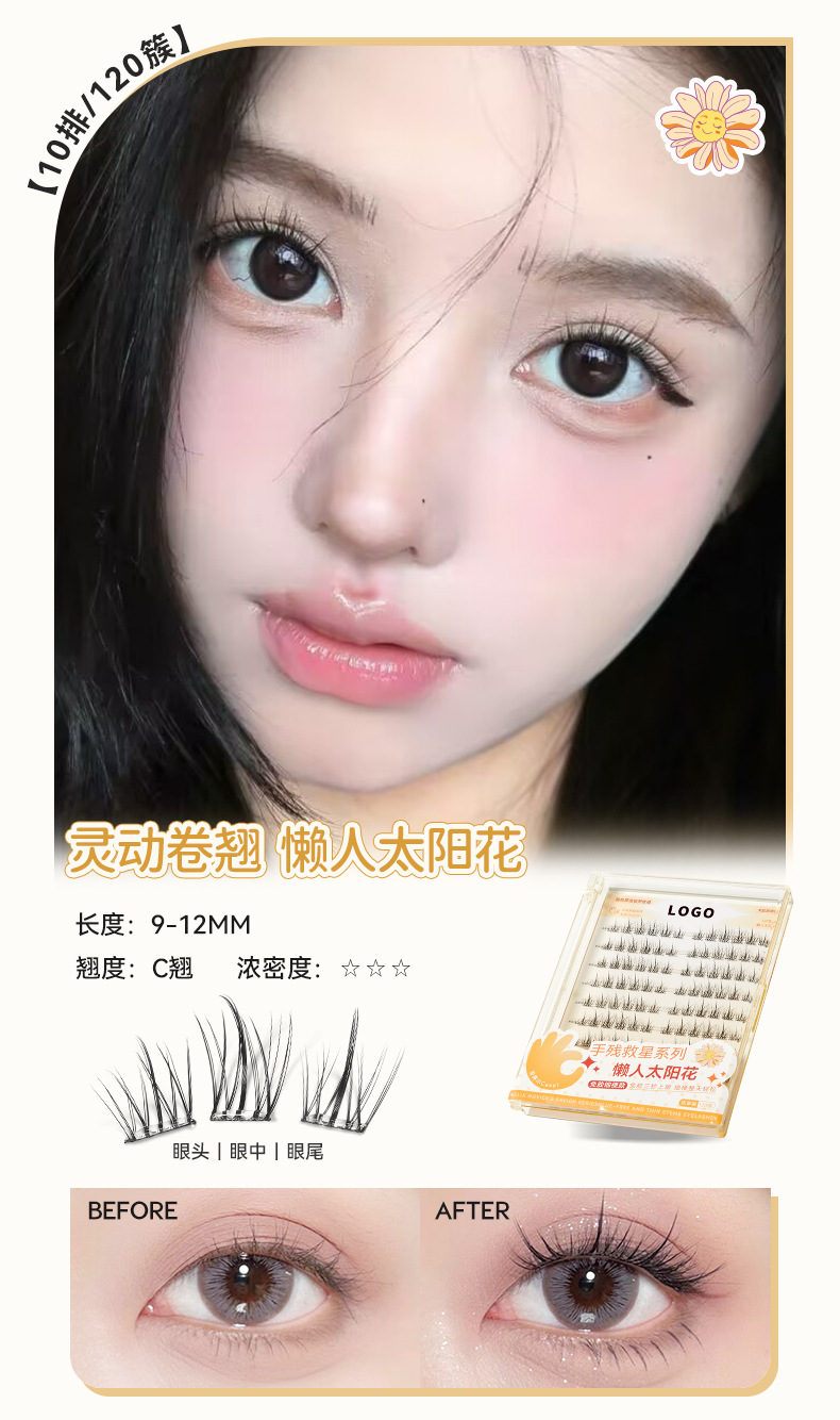 Fábrica auto-injerto 10 filas de gran capacidad perezosa trípode segmentación pestañas falsas flores de sol grandes ojos pestañas libro al por mayor