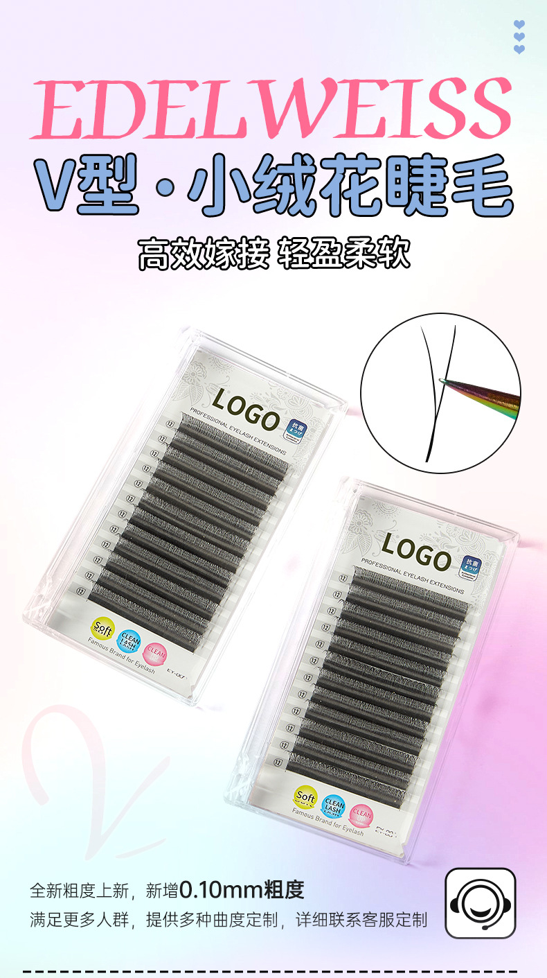 Fábrica de belleza pestañas 2DYY injerto de pelo suave pestañas pequeñas flores de vello en forma de V bifolia bebé curva estrecha fila de pestañas falsas transfronterizas