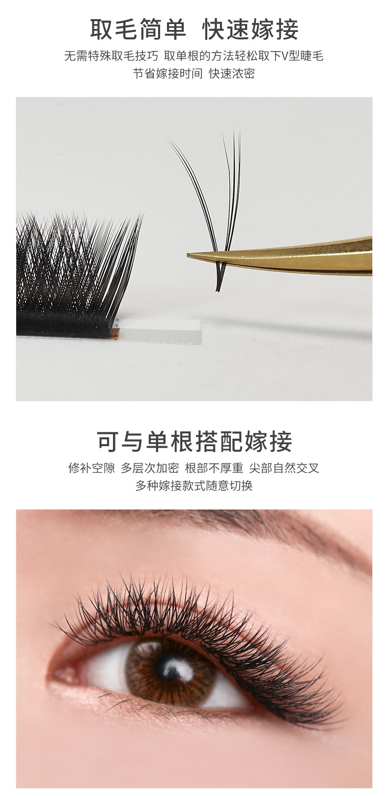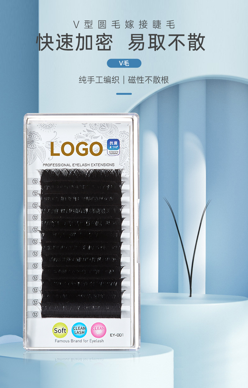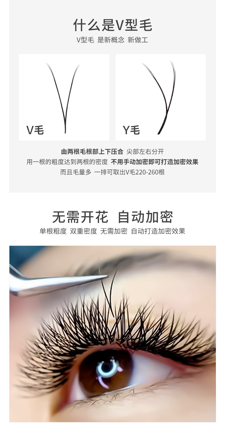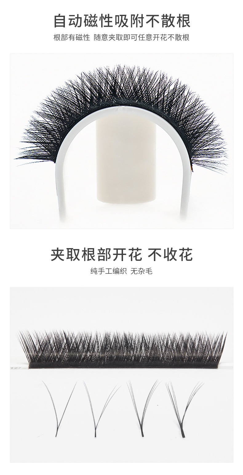 Las pestañas de fábrica florecen, pestañas de injerto de cabello redondo, pestañas falsas, pestañas naturales no dispersas, pestañas de iris densas en forma de V.