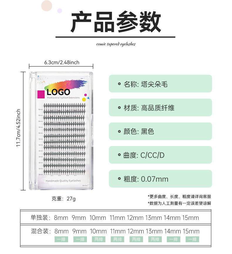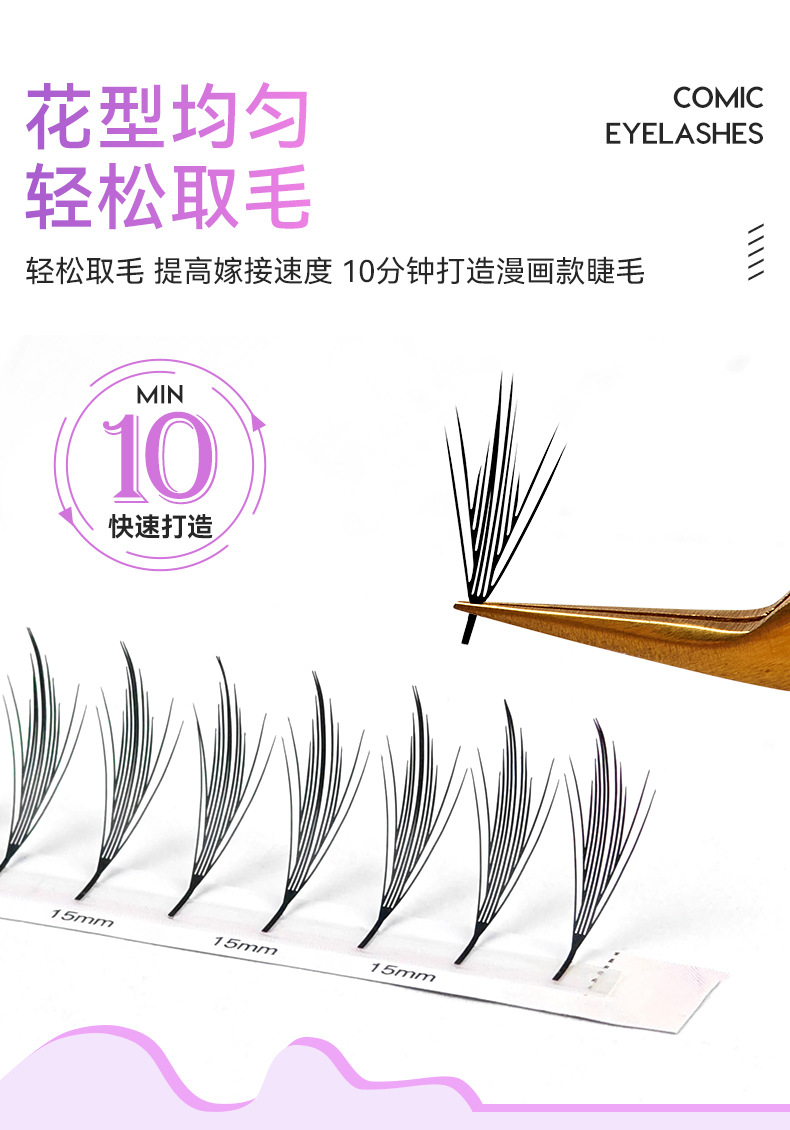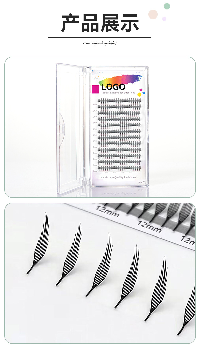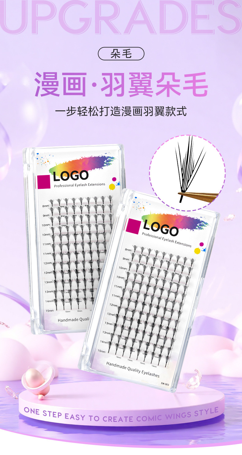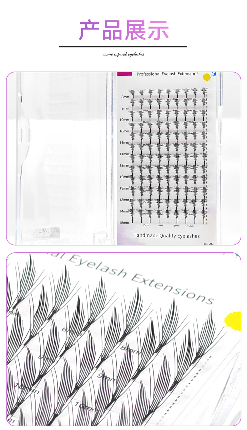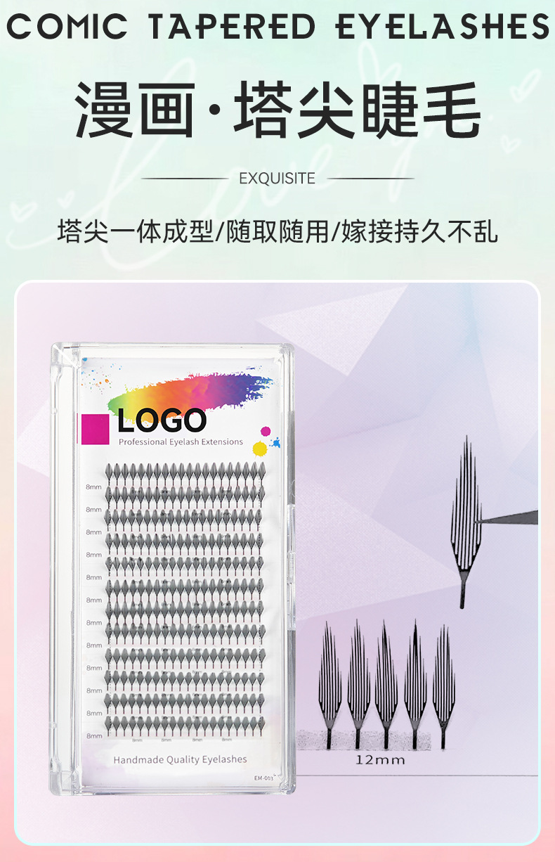 Extensiones de pestañas cónicas estilo caricatura para exportación, pestañas de hada camelia estilo flor de diosa, pestañas húmedas cónicas, pestañas suaves personalizables.