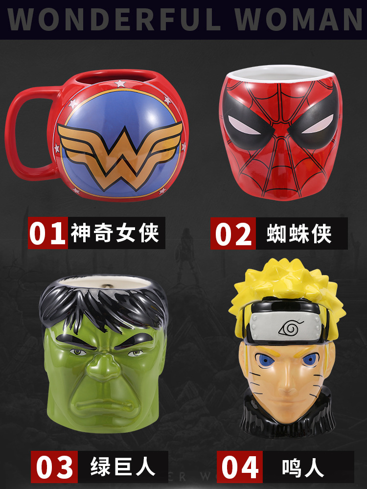 Cross-border Marvel Spider-Man cerámica taza Naruto Hokato taza de agua de gran capacidad taza de marca personalidad taza de anime Hulk