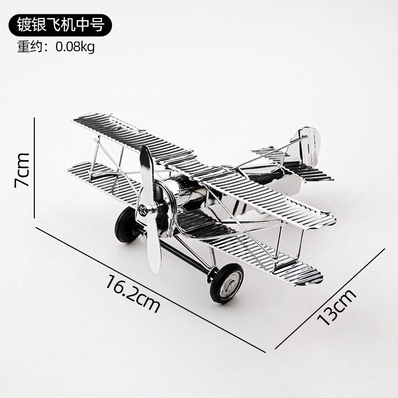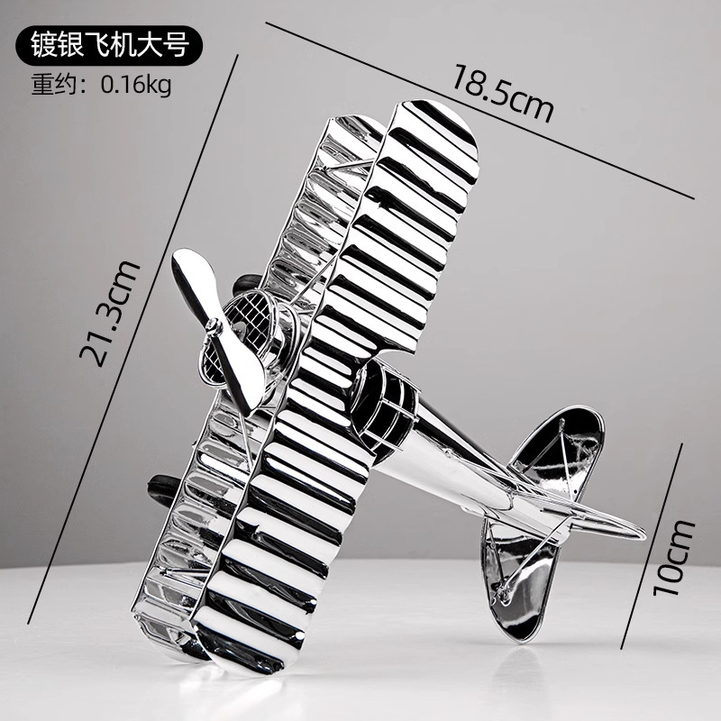 Adorno decorativo grande de avión plateado.