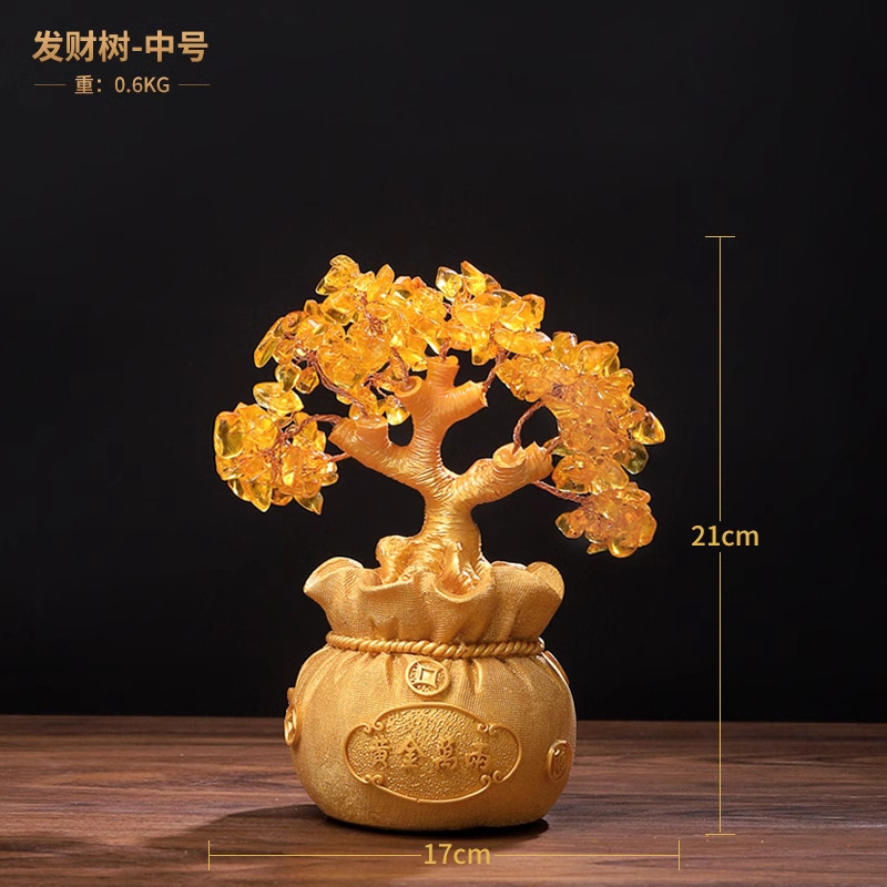 Adornos decorativos de resina con forma de árbol del dinero.