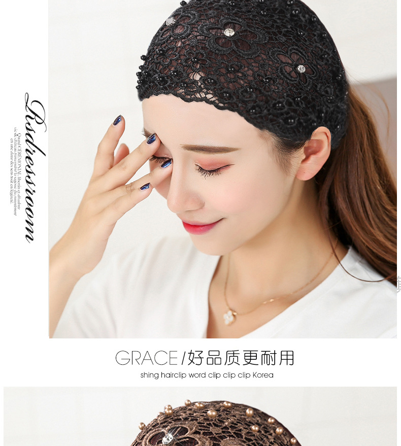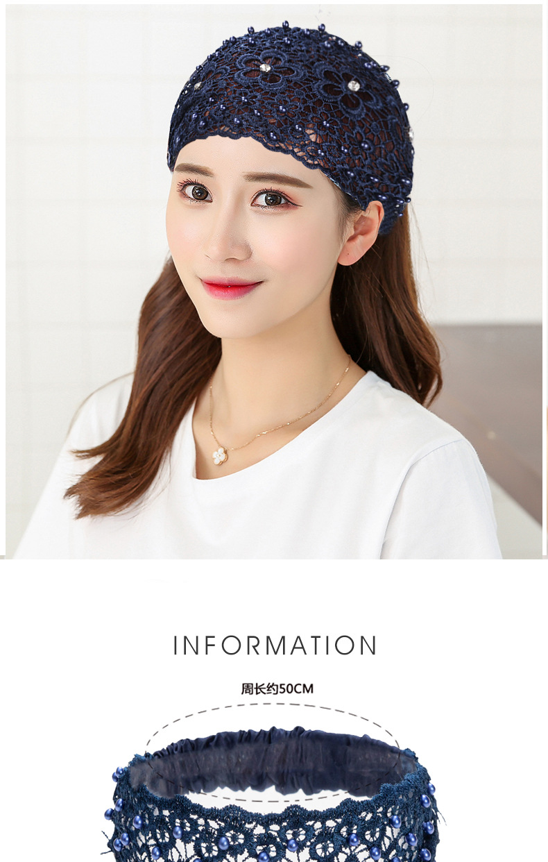 Correa para el cabello con cuentas transfronterizas, cuello blanco hueco, transpirable, encaje, capucha de ala ancha, capucha, capucha, capucha, protección frontal, diadema, cabello