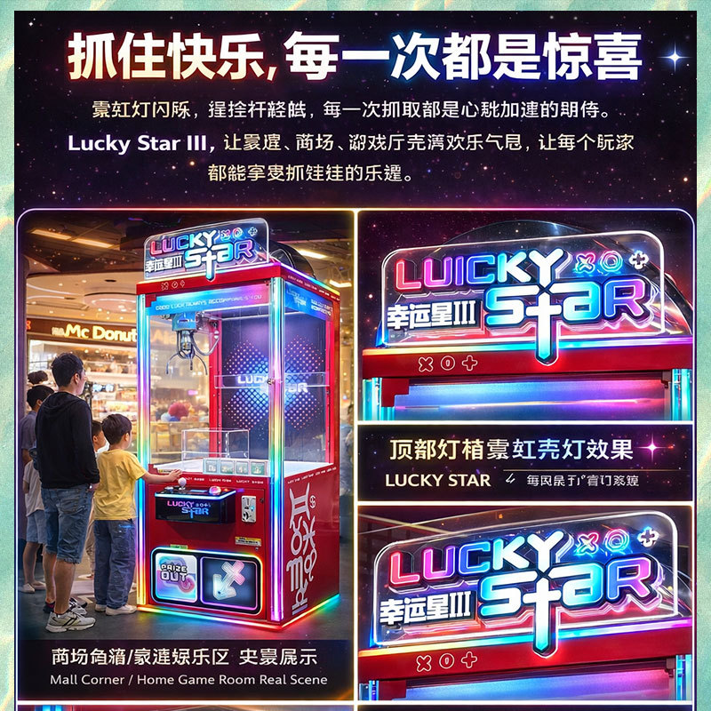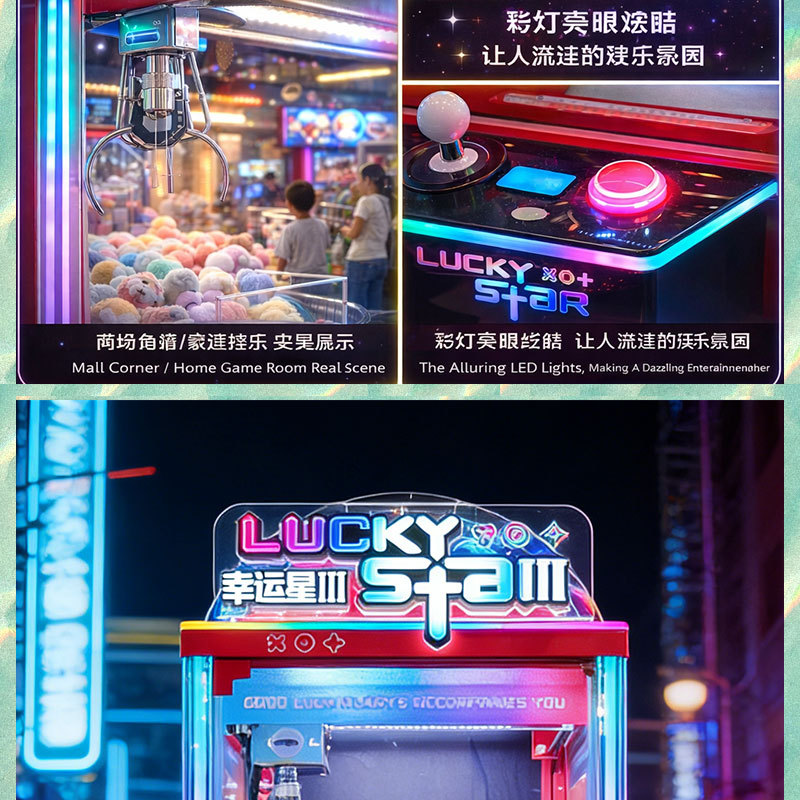 Máquina de clip de suerte pequeña máquina de regalos de luces de color brillante comercial centro comercial de juegos de videojuegos de la ciudad de monedas escanear códigos para atrapar la máquina de regalos
