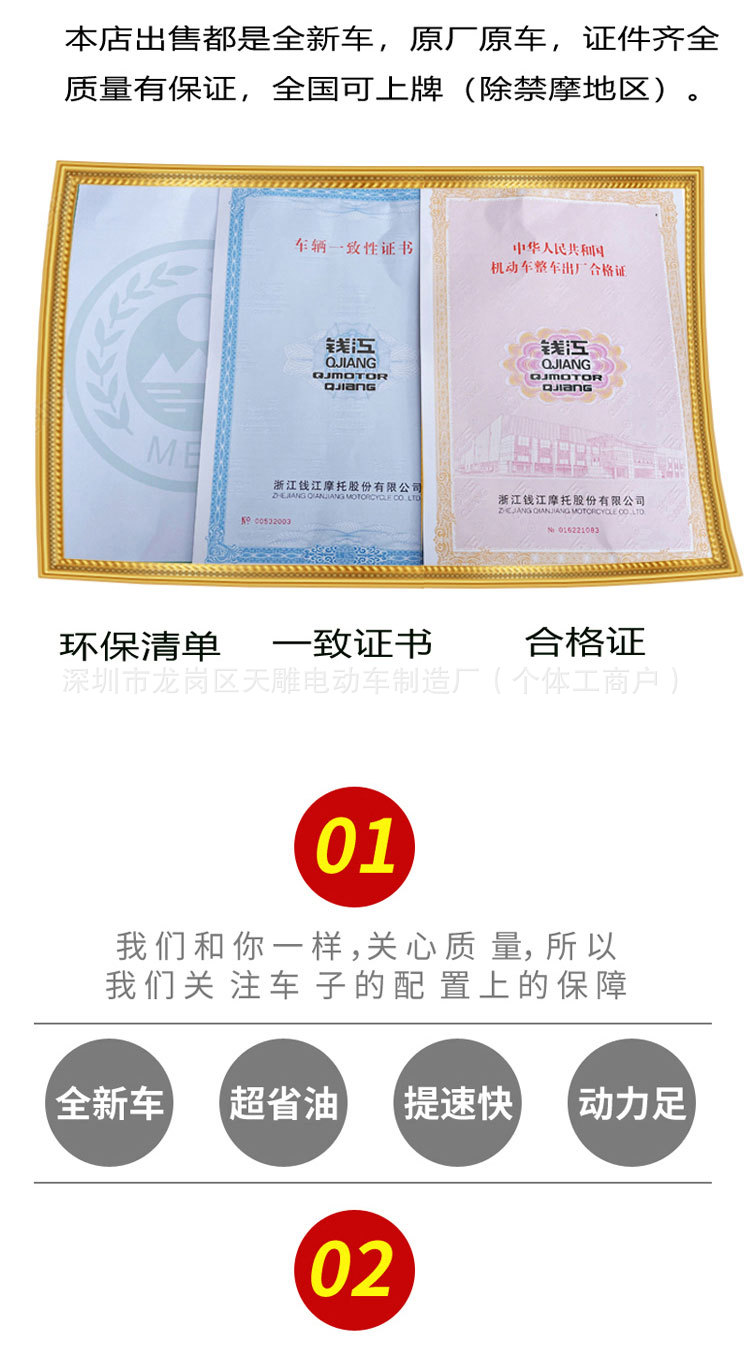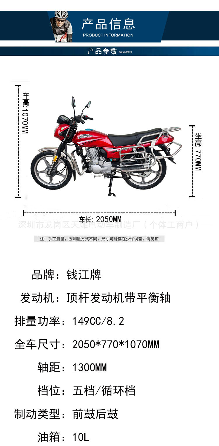 Qianjiang Weilong 150c eje de equilibrio externo de ropa de hombre para montar combustible nacional cuatro inyección eléctrica puede ser marca de motocicleta auténtica