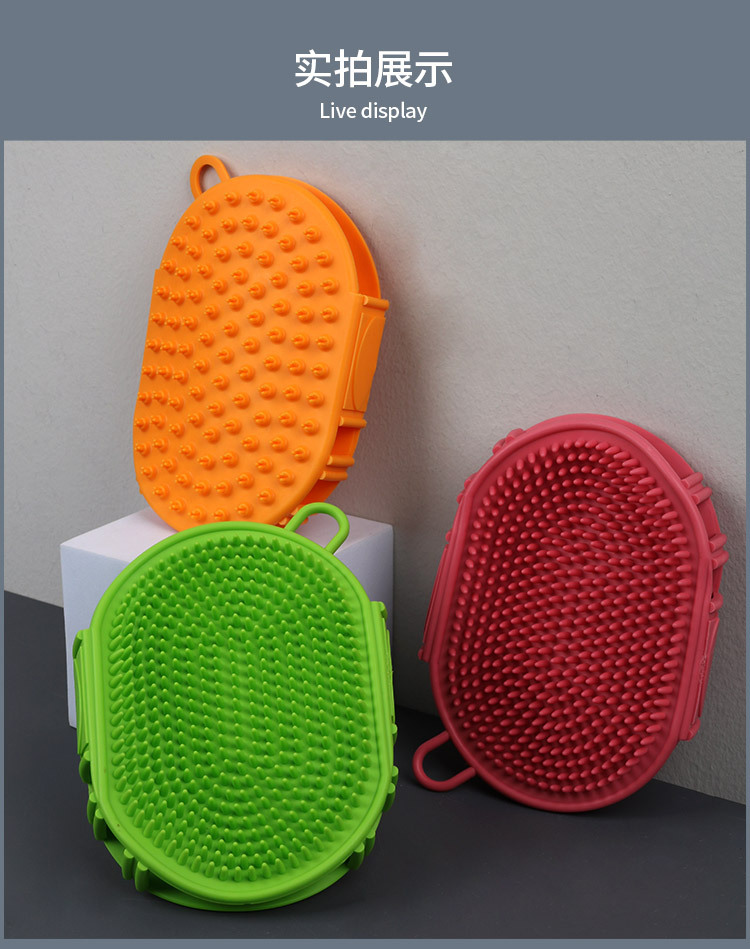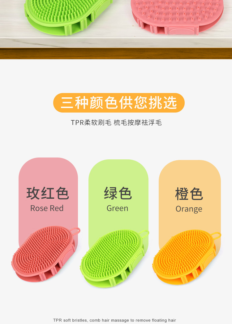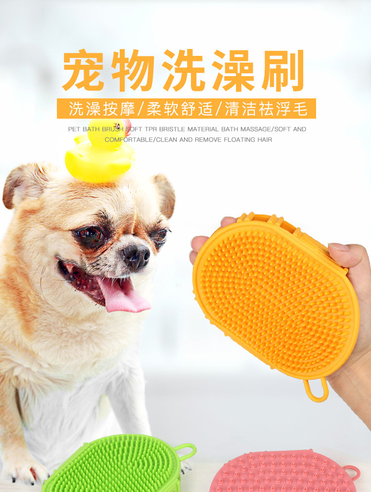 Cepillo de masaje para baño de mascotas, cepillo de doble cara para limpieza de perros y gatos, suministros de belleza al por mayor, material TPR para perros.