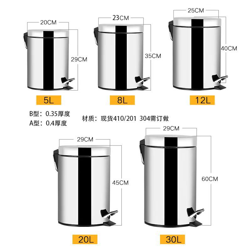Botella de basura de acero inoxidable pie sanitario cubo de basura de hotel 12 litros casero con cubierta cubo de almacenamiento