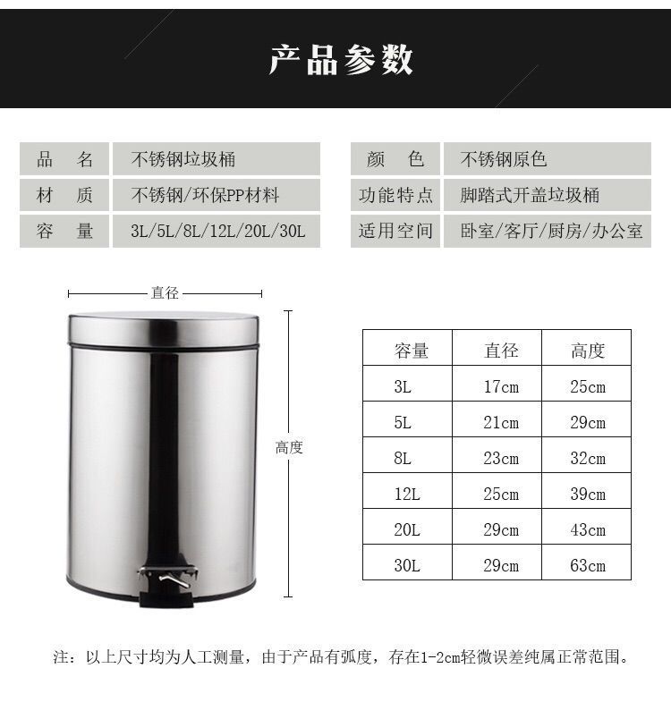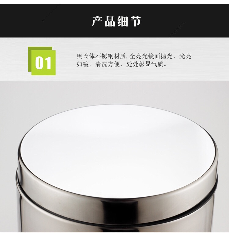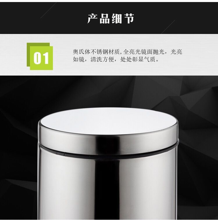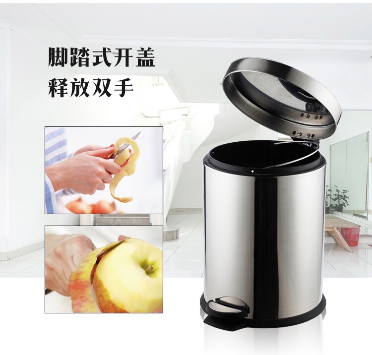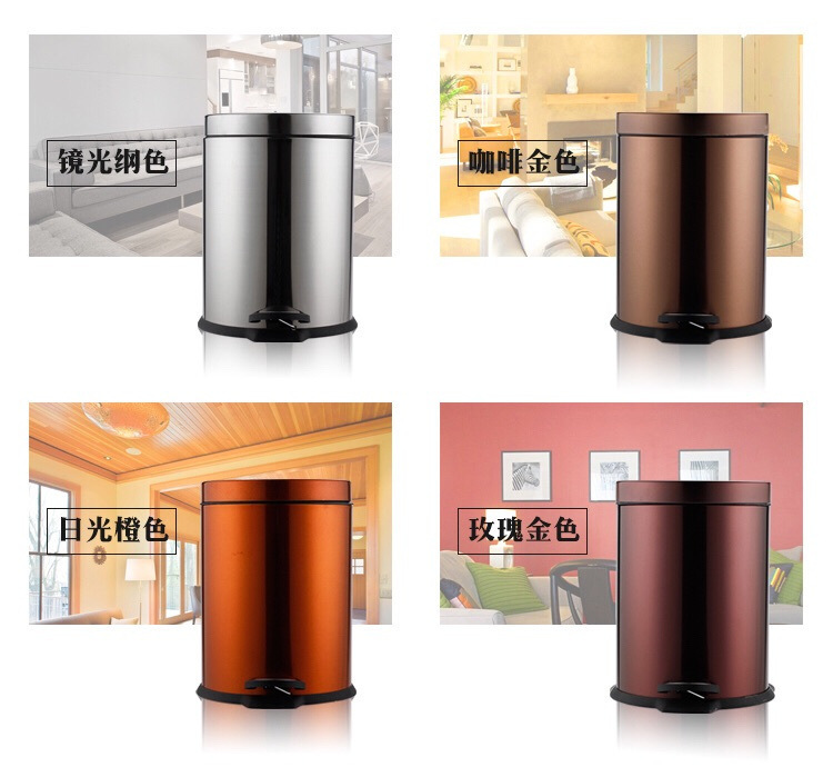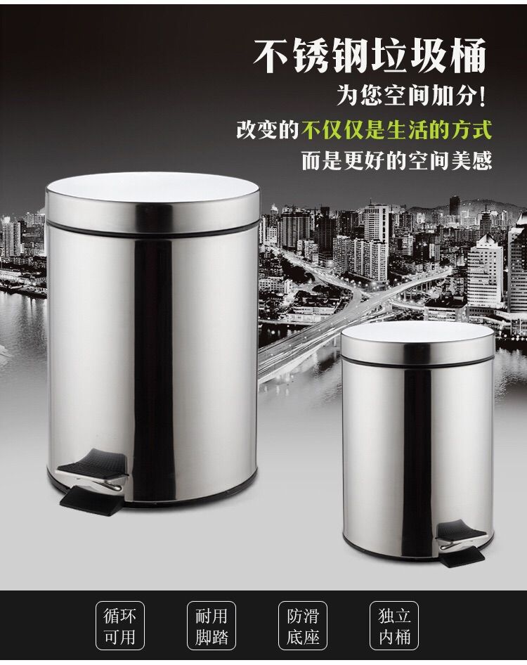 Botella de basura de acero inoxidable gruesa 5L8L12L tipo pie cubierto con tubo interno hotel oficina en casa Wei Rong primavera