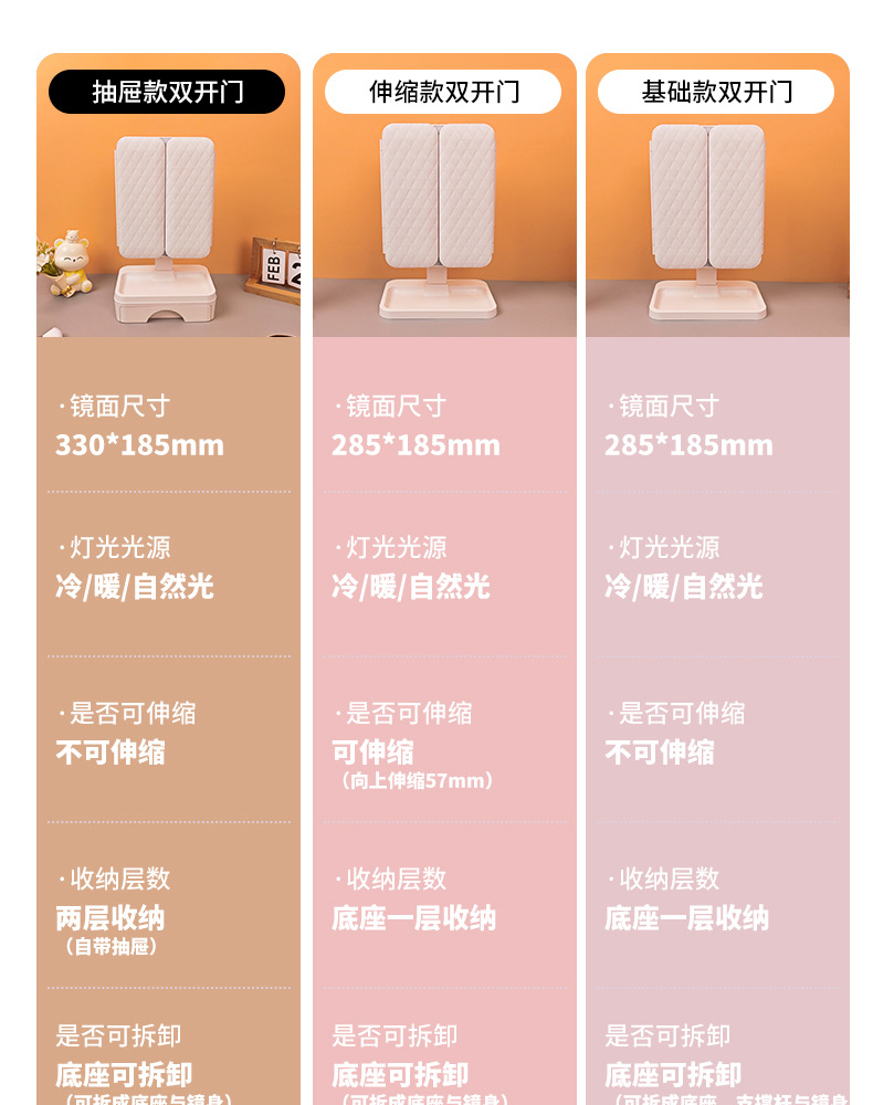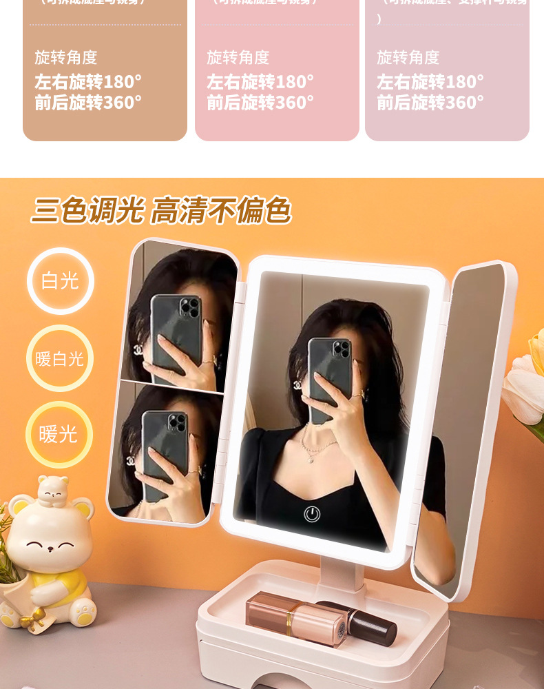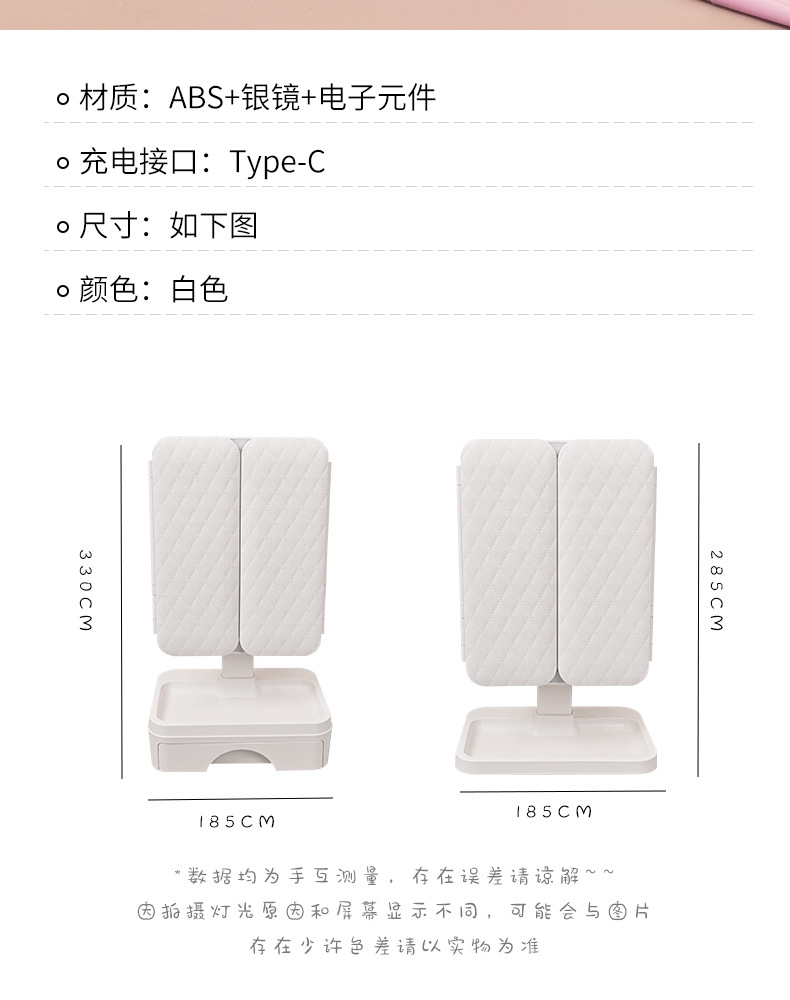 | Colores | Textura de la piel blanca [esquinas redondeadas★Modelo recargable] Con caja de almacenamiento con cajón,Textura de cuero blanco [esquinas redondeadas★Modelo recargable] Con luces en ambos lados + caja de almacenamiento con cajón,Textura de la piel blanca [esquinas redondeadas ★ Sin modelo ligero],Patrón de cuero blanco [esquinas redondeadas★Carga] atenuación de tres colores,Textura de cuero blanco [esquinas redondeadas ★ Modelo recargable] Iluminación de tres tonos + modelo telescópico,Textura de la piel blanca [esquinas redondeadas★Modelo recargable] Luces en ambos lados + embalaje en caja de regalo,Blanco esmerilado [ángulo recto★Carga] atenuación de tres colores,Cuero blanco [ángulo recto★Carga] atenuación de tres colores,Blanco esmerilado [ángulo recto★Carga] La atenuación de tres colores es retráctil,Cuero blanco [ángulo recto★Carga] La atenuación de tres colores es retráctil |