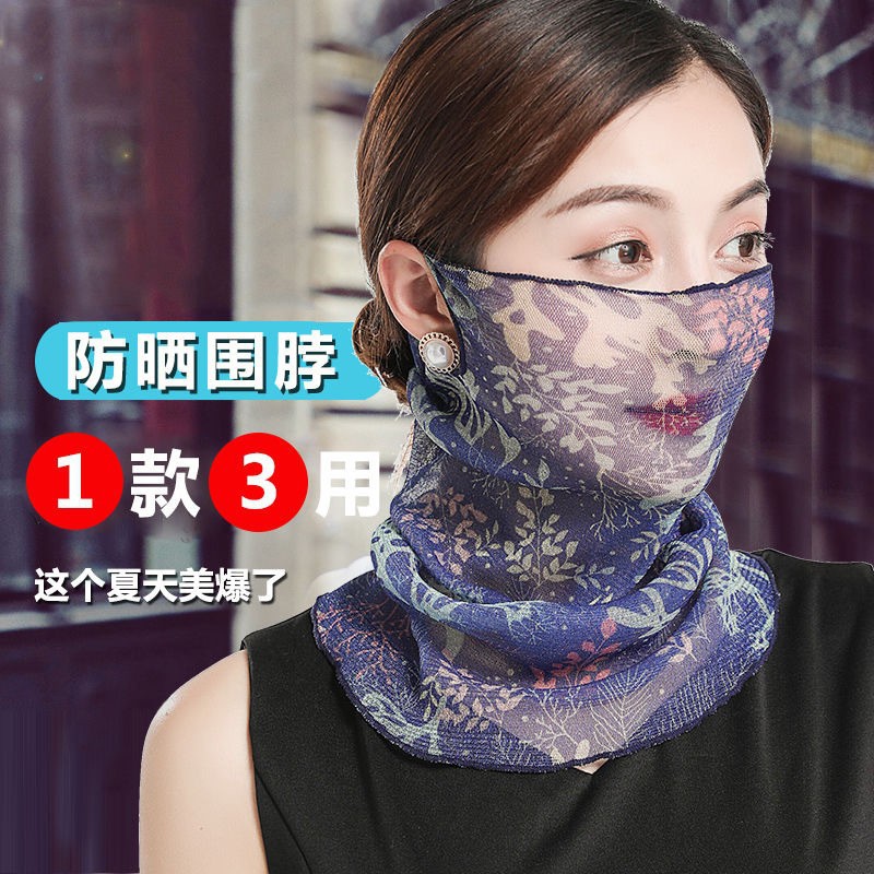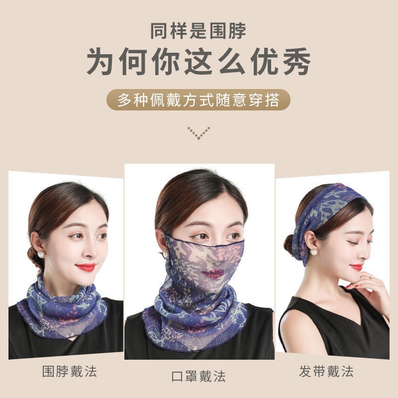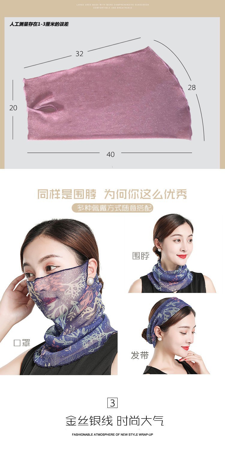 Cuello de orejas de alambre de oro para mujeres primavera y verano universal protector solar cuello de cuello multifuncional velo de cuello de cubierta de cabeza de seda pequeña bufalla