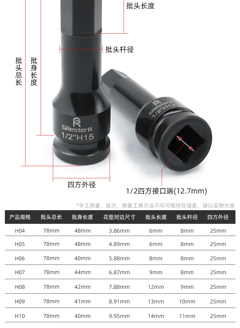 | Modelo | 1 / 2 con cabeza de lote hexagonal rígida 8 conjuntos, 1 / 2 con cabeza de lote hexagonal rígida 10 conjuntos, 1 / 2 con cabeza de lote hexagonal rígida 16 conjuntos, 1 / 2 con cabeza de lote hexagonal hembra 21 conjuntos (incluyendo la junta universal + varilla de conexión de 3 pulgadas), 1 / 2 endurecido 4mm conector hexagonal H4, 1 / 2 endurecido 5mm conector hexagonal H5, 1 / 2 endurecido 6mm conector hexagonal H6, 1 / 2 endurecido 7mm conector hexagonal H7, 1 / 2 endurecido 8mm conector hexagonal H8, 1 / 2 endurecido 9mm conector hexagonal H9, 1 / 2 endurecido 10mm conector hexagonal H10, 1 / 2 endurecido 11mm conector hexagonal H11, 1 / 2 endurecido 1 / 2 endurecido 12mm unido hexagonal cabeza de lote H12, 1 / 2 endurecido 13mm unido hexagonal cabeza de lote H13, 1 / 2 endurecido 14mm unido hexagonal cabeza de lote H14, 1 / 2 endurecido 15mm unido hexagonal cabeza de lote H15, 1 / 2 endurecido 16mm unido hexagonal cabeza de lote H16, 1 / 2 endurecido 17mm unido hexagonal cabeza de lote H17, 1 / 2 endurecido 18mm unido hexagonal cabeza de lote H18, 1 / 2 endurecido 19mm unido hexagonal cabeza de lote H19, 1 / 2 endurecido 21mm unido hexagonal cabeza de lote H21, 1 / 2 endurecido 22mm hexagonal unido cabeza de lote H22, 1 / 2 endurecido 24mm hexagonal unido cabeza de lote H24, 1 / 2 endurecido 27mm hexagonal unido cabeza de lote H27, 1 / 2 endurecido 30mm hexagonal unido cabeza de lote H30, 1 / 2 endurecido 32mm hexagonal unido cabeza de lote H32 |