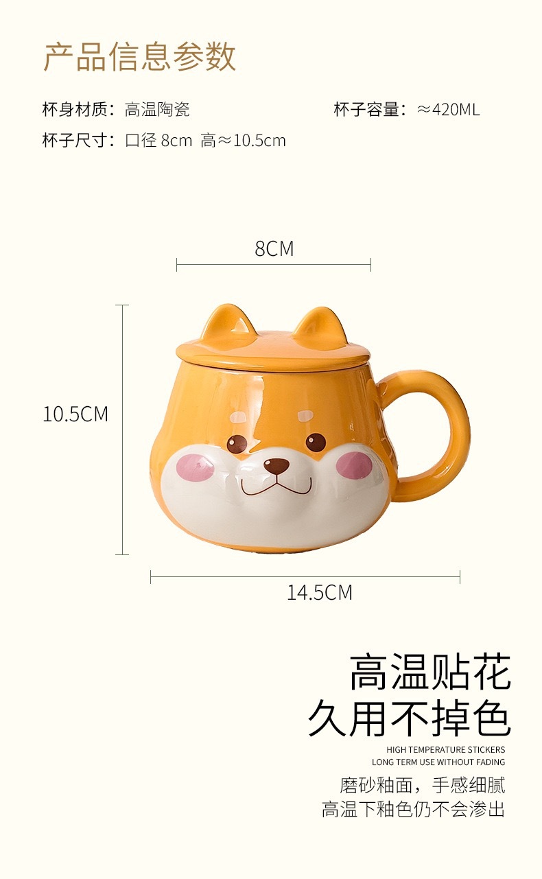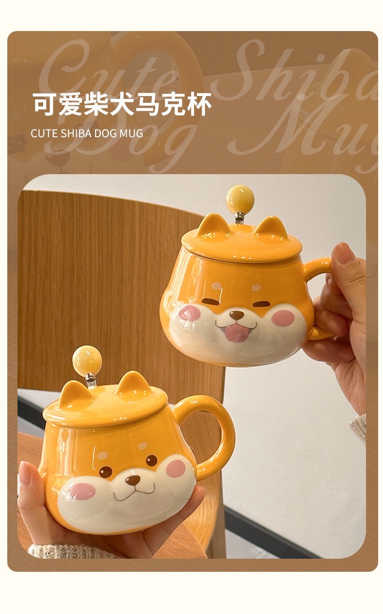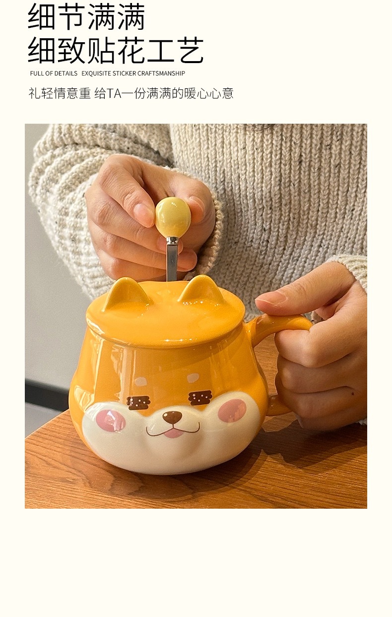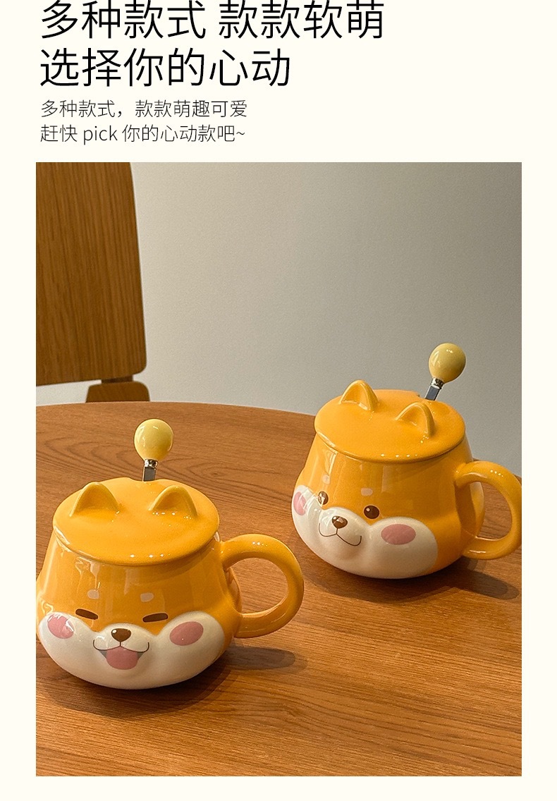2024 Taza Shiba Inu creativa y linda con tapa, cuchara, taza de cerámica para el hogar de alto valor, taza de agua para parejas, regalo de mano