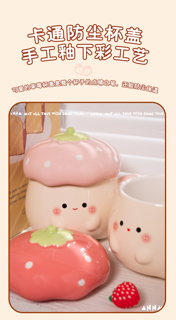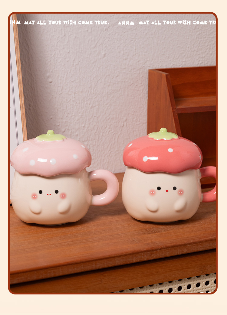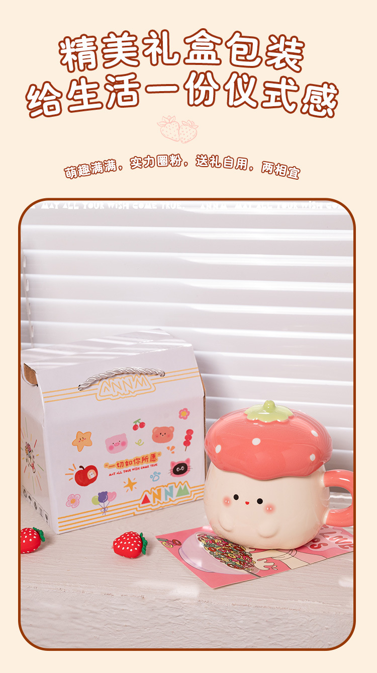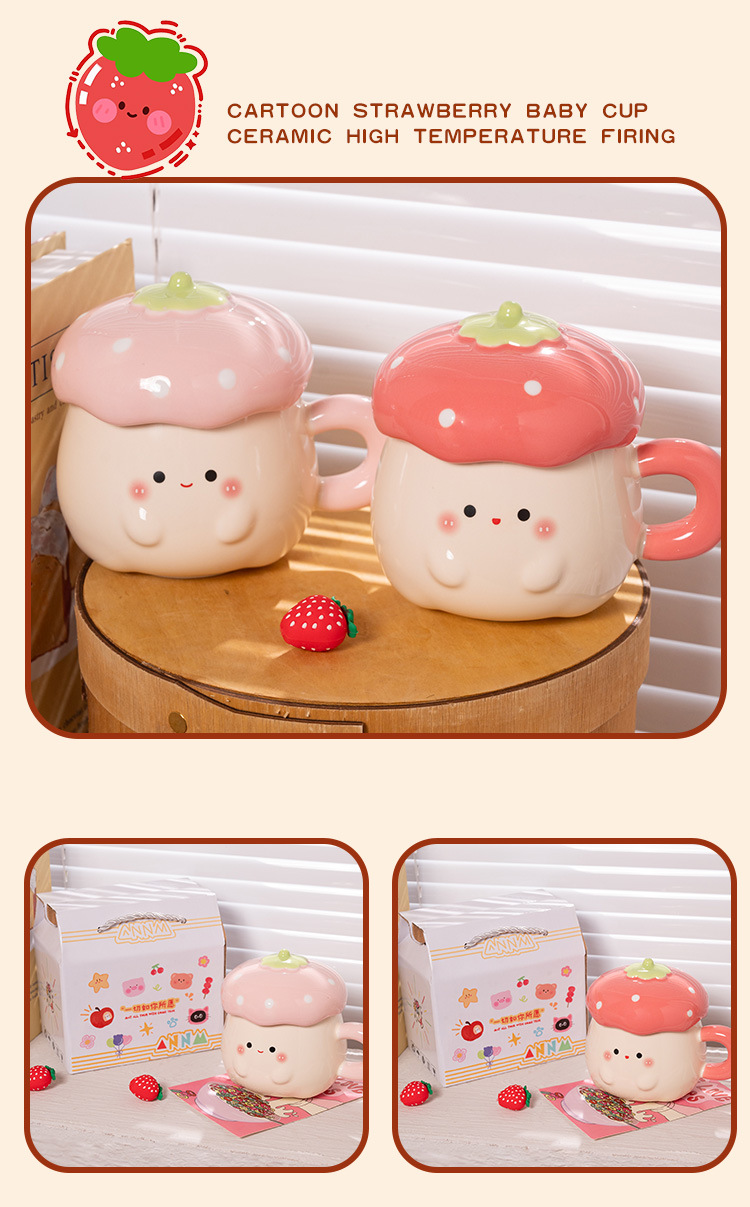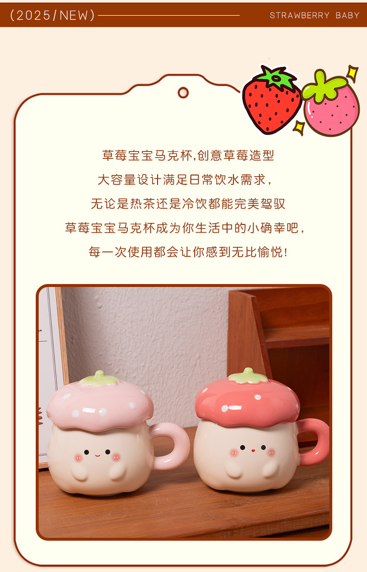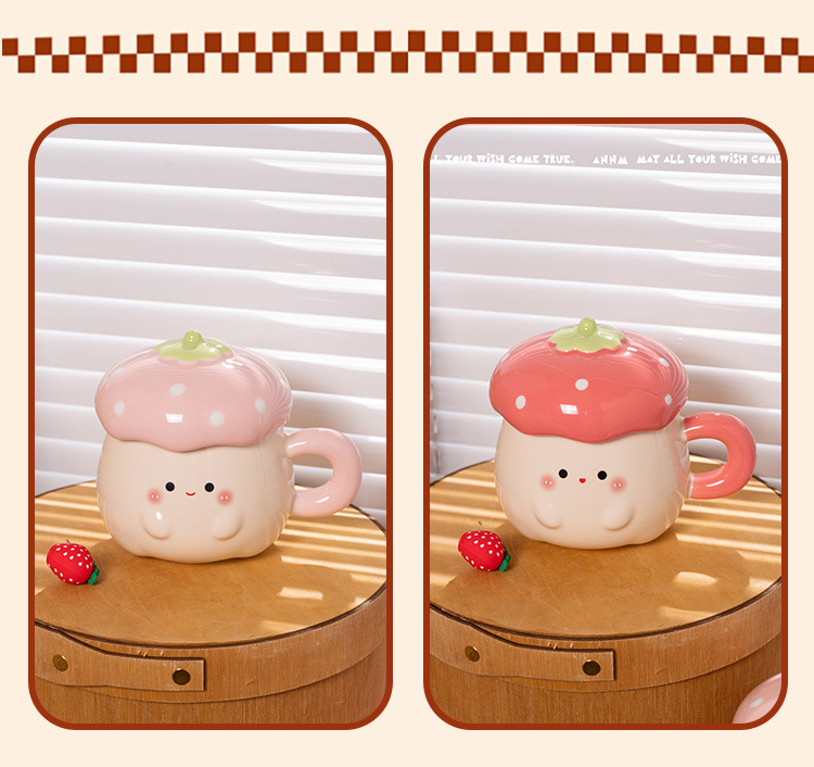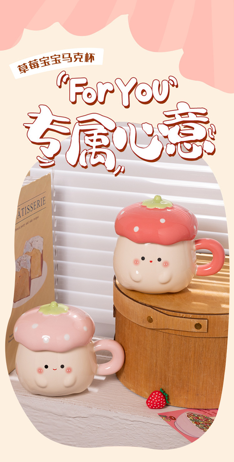 Cute Strawberry Water Cup para mujer Nuevo estilo 2025 Taza de alto valor Beber para el hogar Taza de cerámica Regalo de cumpleaños