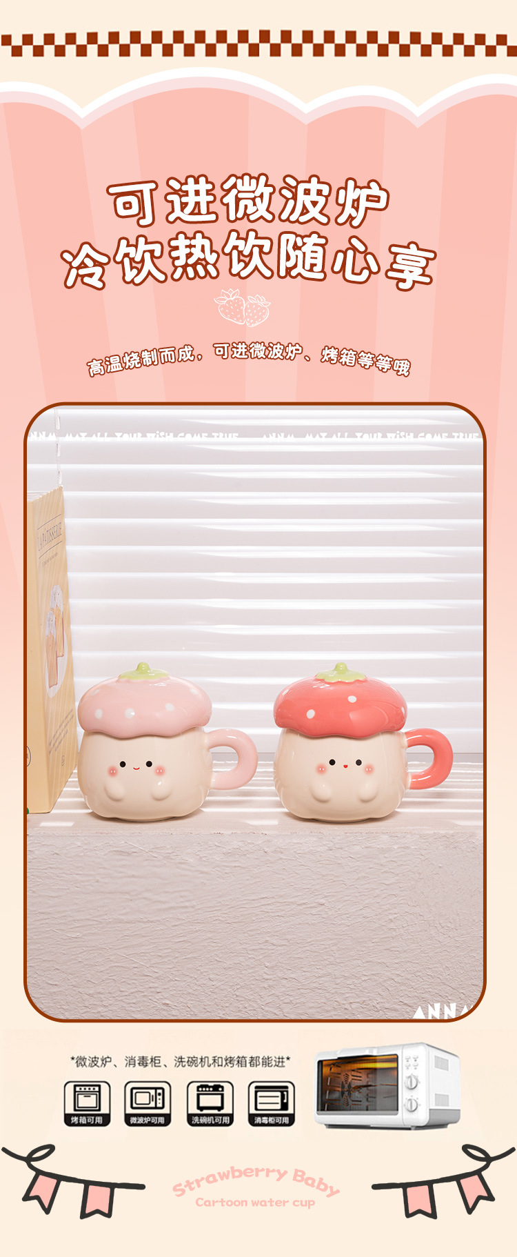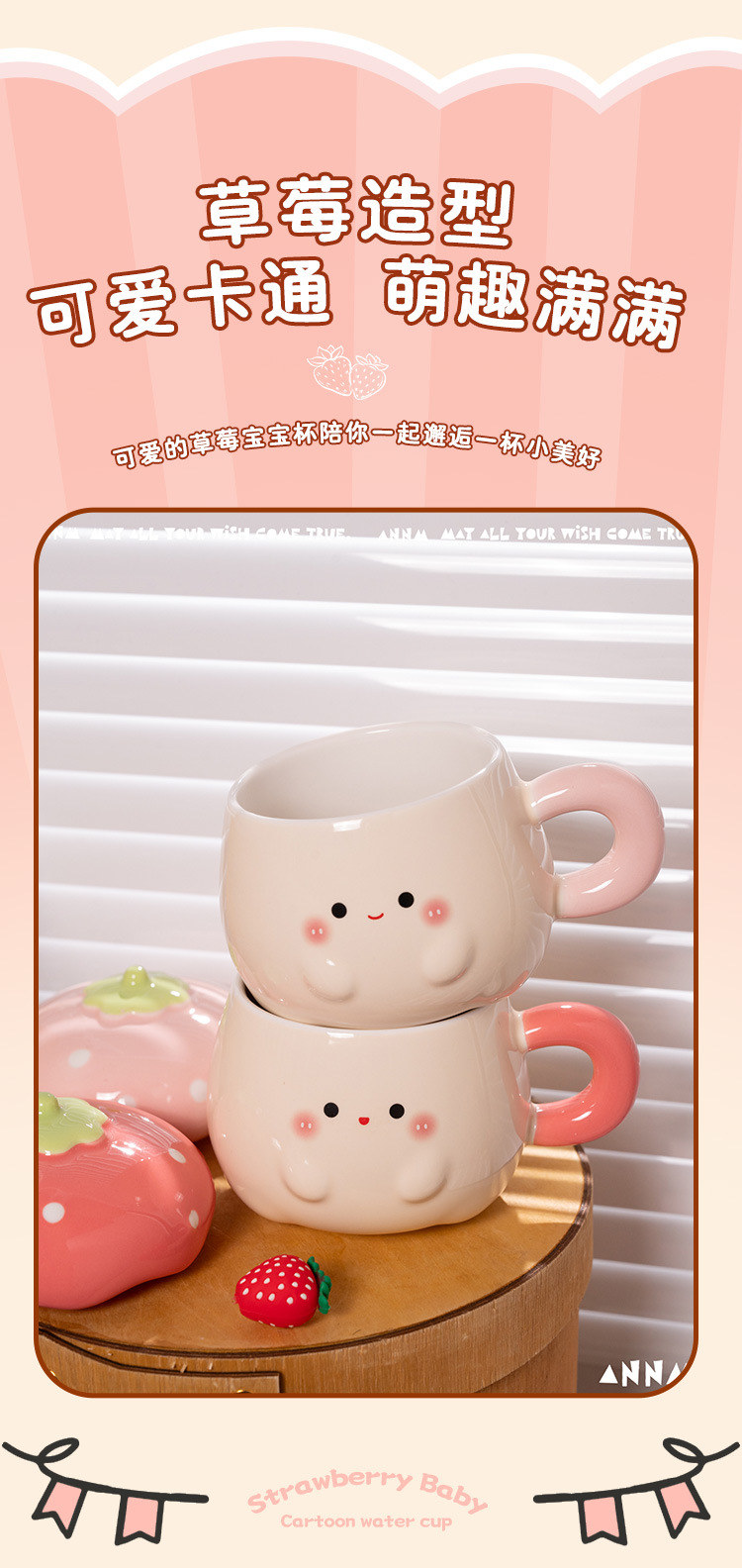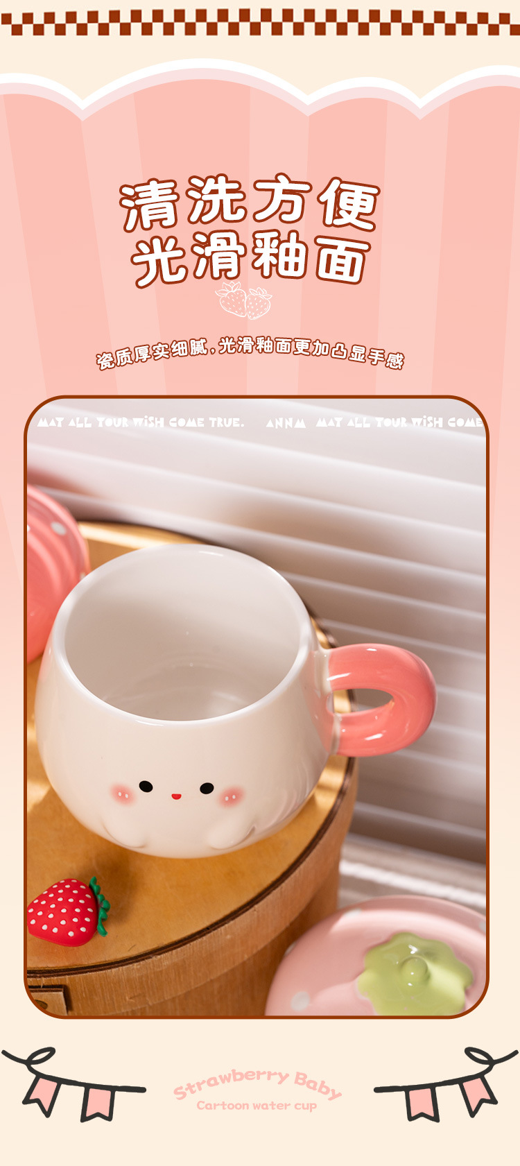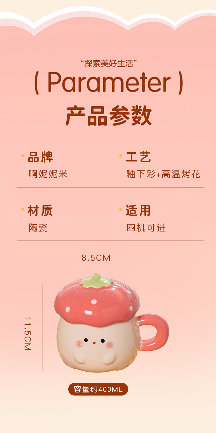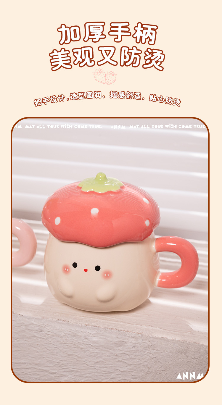 Cute Strawberry Water Cup para mujer Nuevo estilo 2025 Taza de alto valor Beber para el hogar Taza de cerámica Regalo de cumpleaños