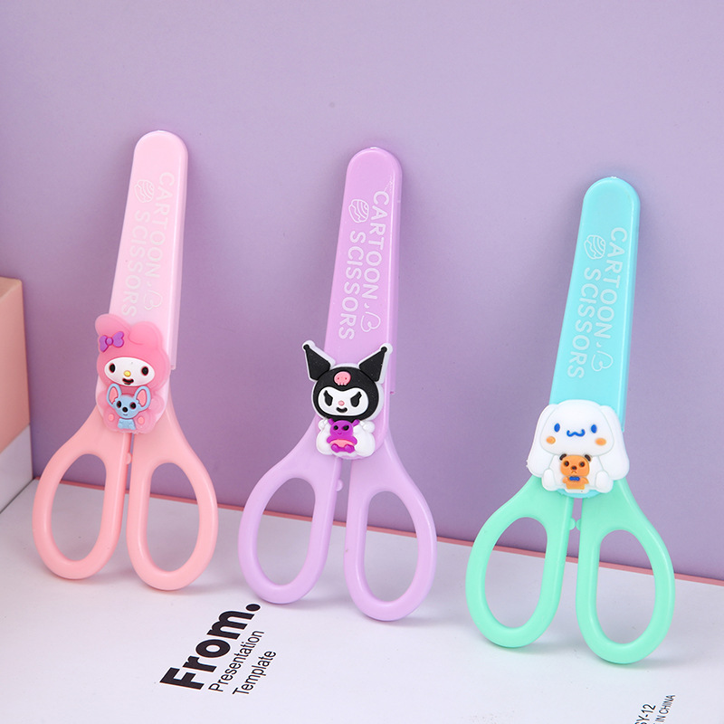 Kulomi caricatura lindo mini niños tijeras hechas a mano tijeras de seguridad para estudiantes de primaria anti-clip de plástico multifuncional