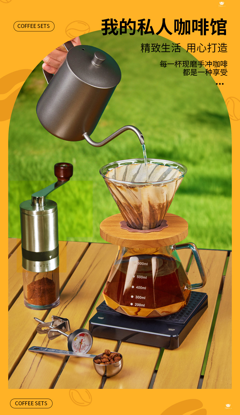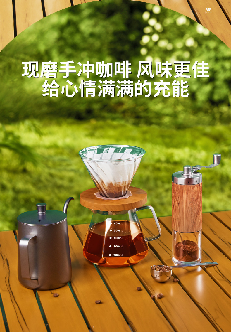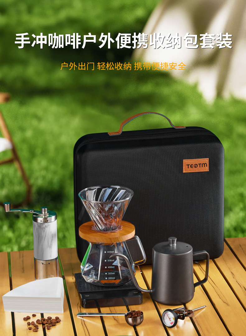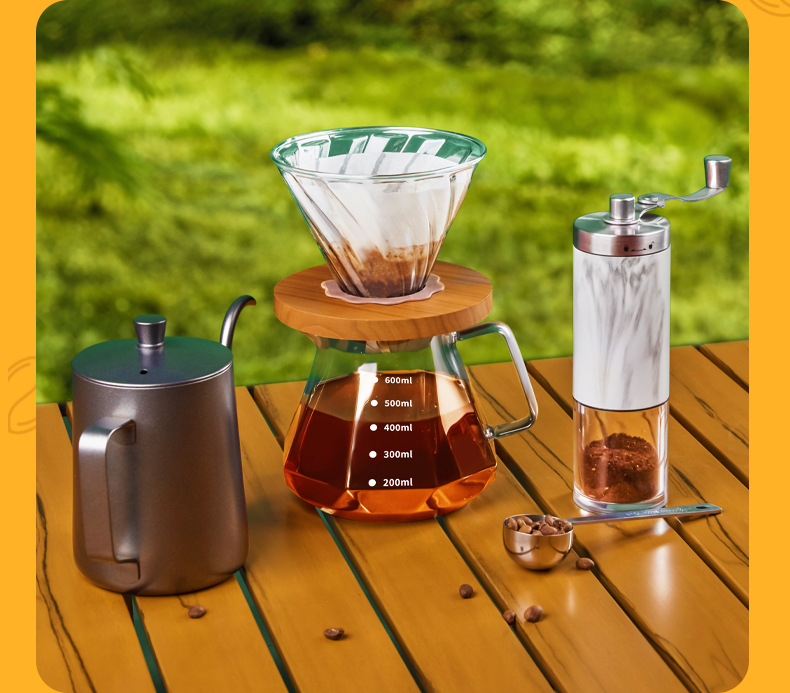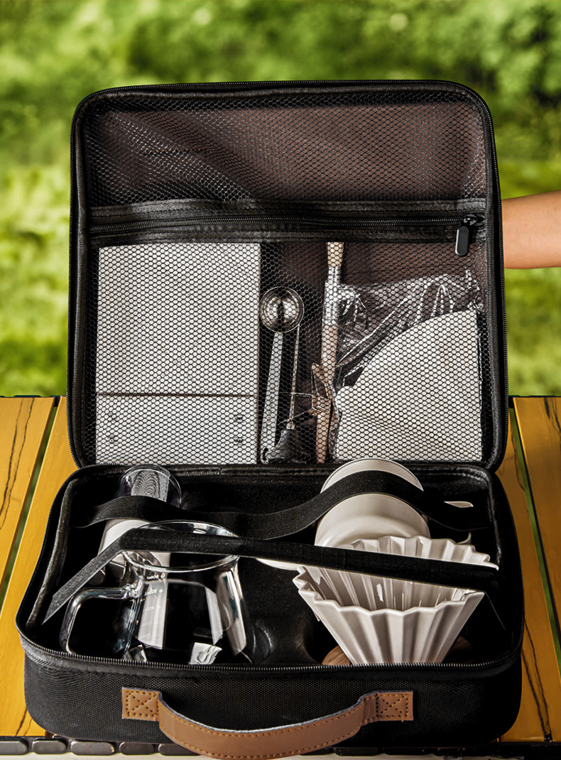 Juego de café portátil para acampar al aire libre, juego de café molido a mano, caja de almacenamiento, cafetera de preparación manual, combinación transfronteriza