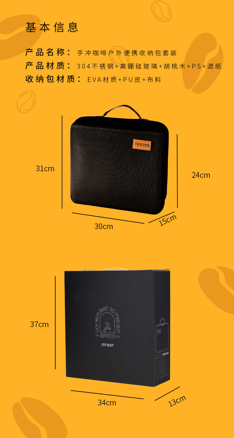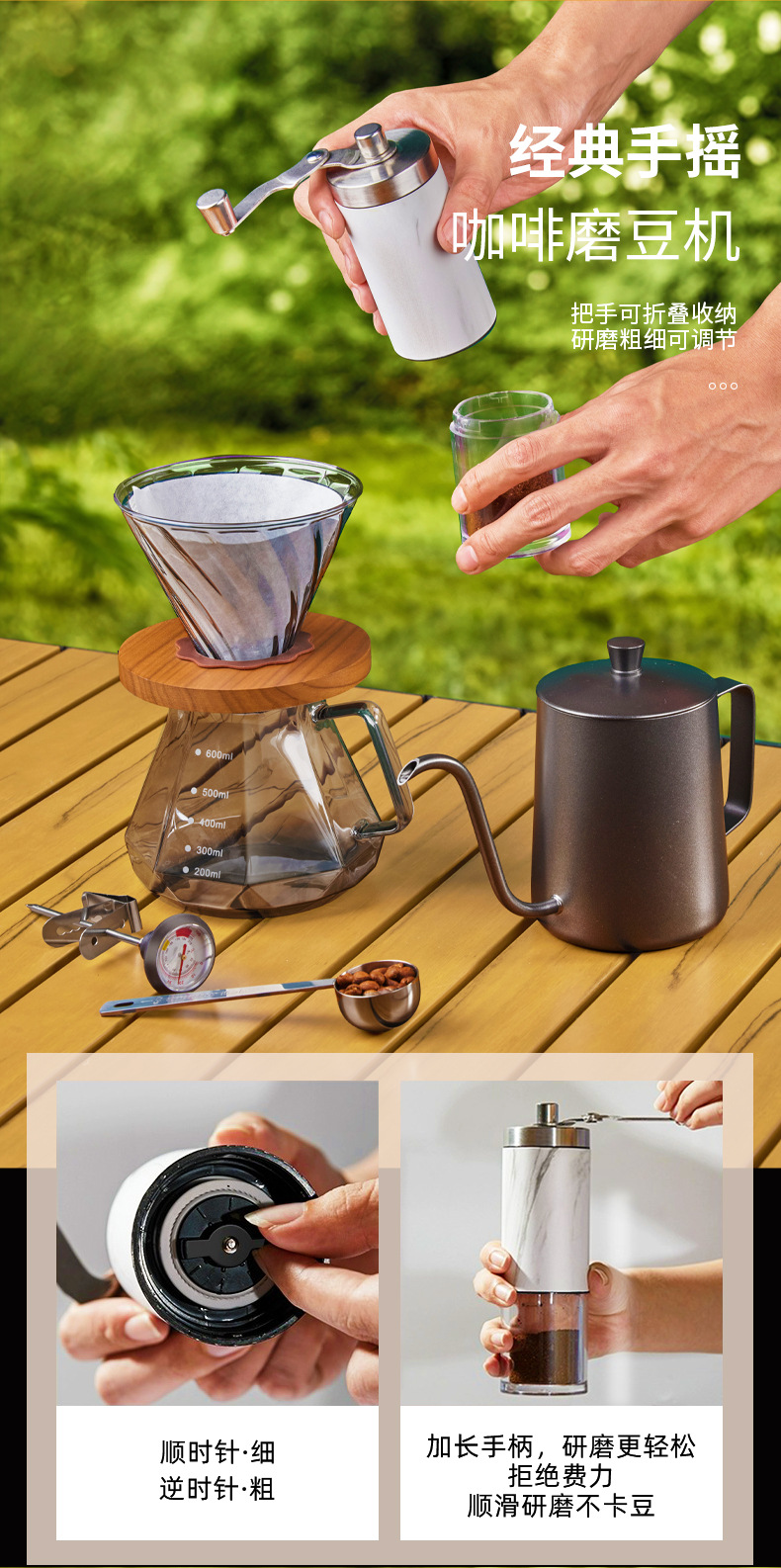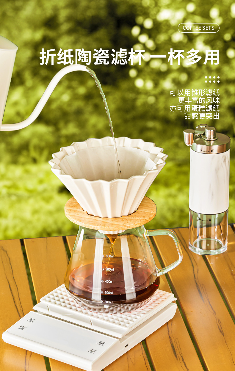 Juego de café portátil para acampar al aire libre, juego de café molido a mano, caja de almacenamiento, cafetera de preparación manual, combinación transfronteriza