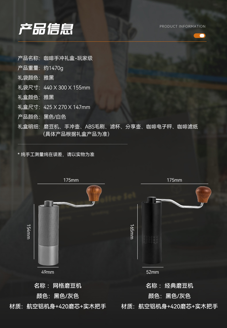 Juego de café hecho a mano, molinillo de mano, taza de filtro de cafetera, balanza electrónica, regalo, juego de caja de regalo de café