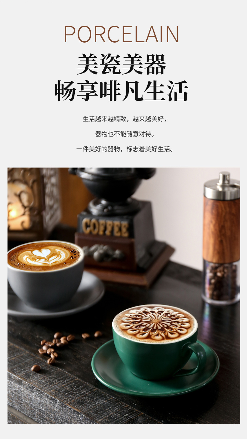 300ml de cerámica europea dibujo de flores café con latas de café especial conjunto de taza de café pequeño lujo retro mate concentrado