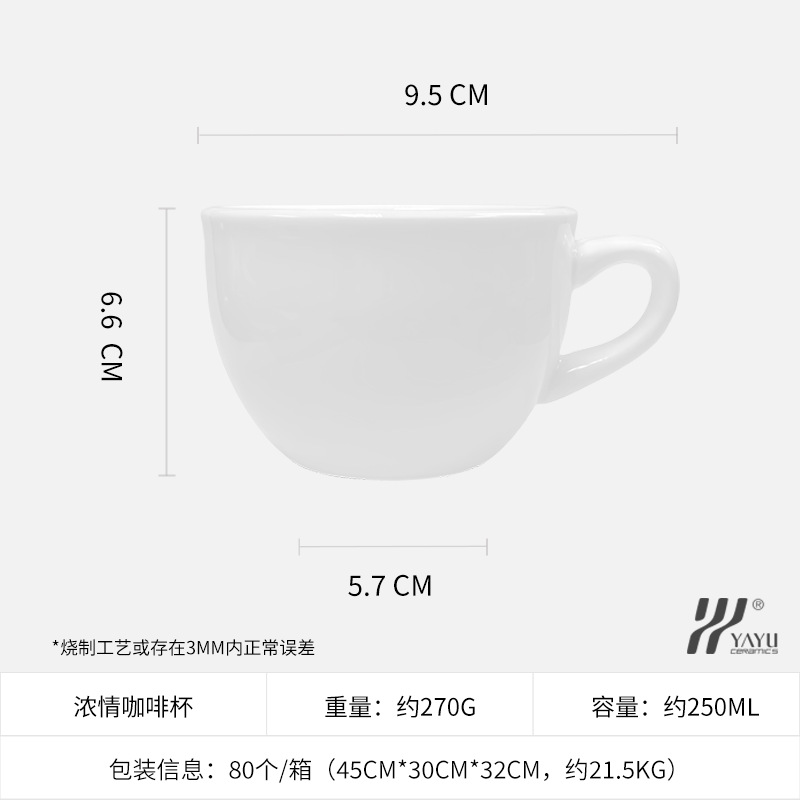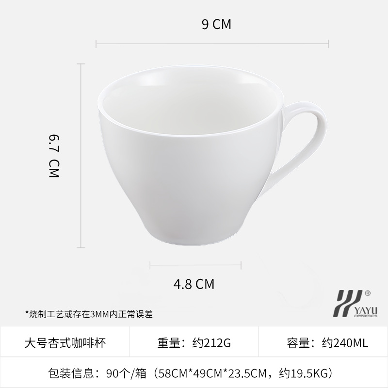 | Color | Taza de café clásica - pequeña (125ml), taza de café clásica - mediana (160ml), taza de café clásica - grande (200ml), taza de café de albaricoque - pequeña (150ml), taza de café de albaricoque - grande (240ml), taza de café australiana (200ml), taza de café de aviación (230ml), taza de café espresso (240ml) |