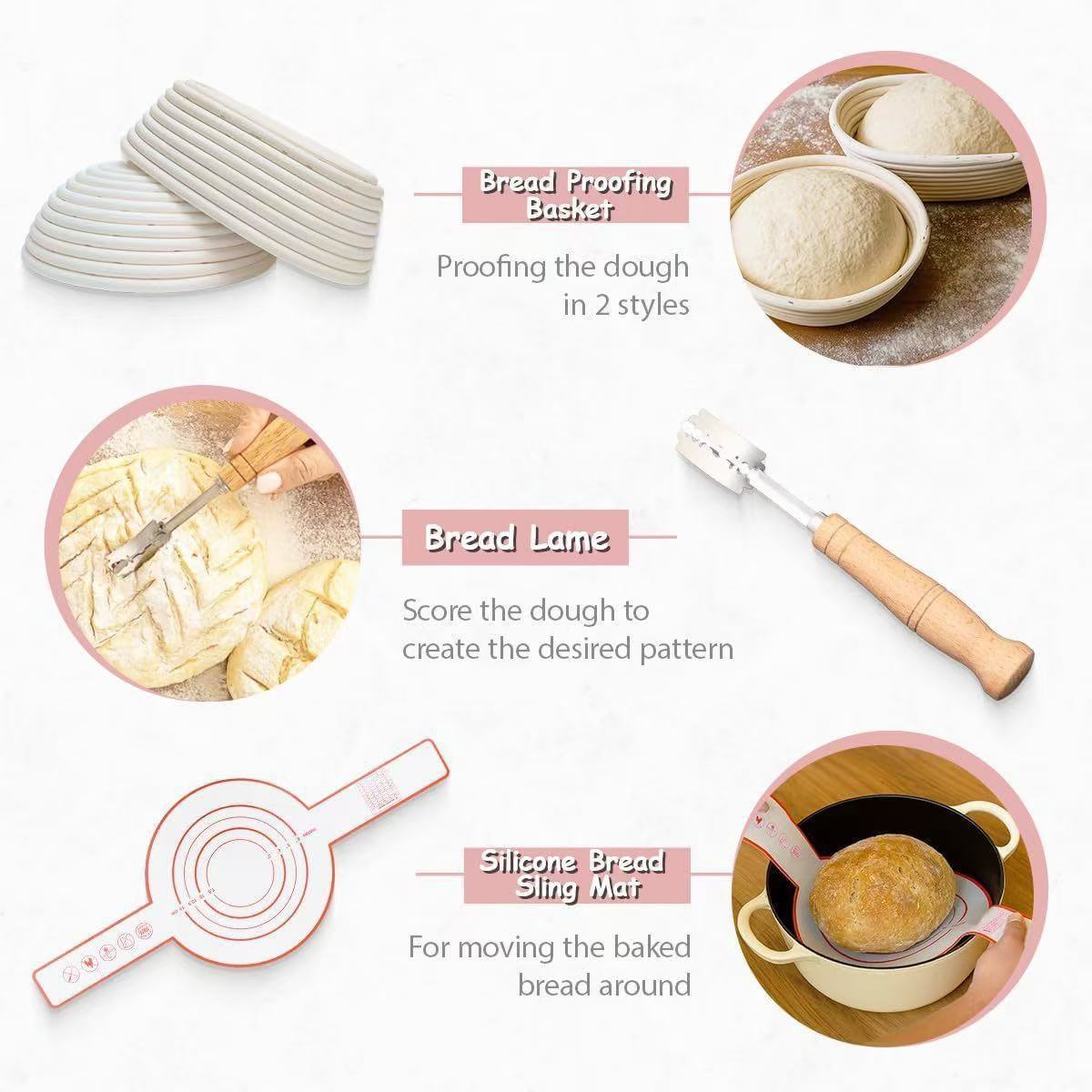 Amazon Banneton Fermentation Basket Tool Set Pan Panadería hecha a mano Canasta Panadería